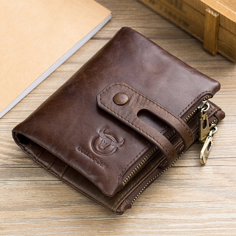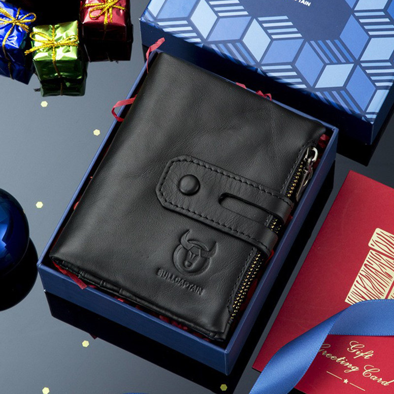 牛船长真皮男钱包竖款休闲短款多功能相册驾驶证头层牛皮折叠钱夹