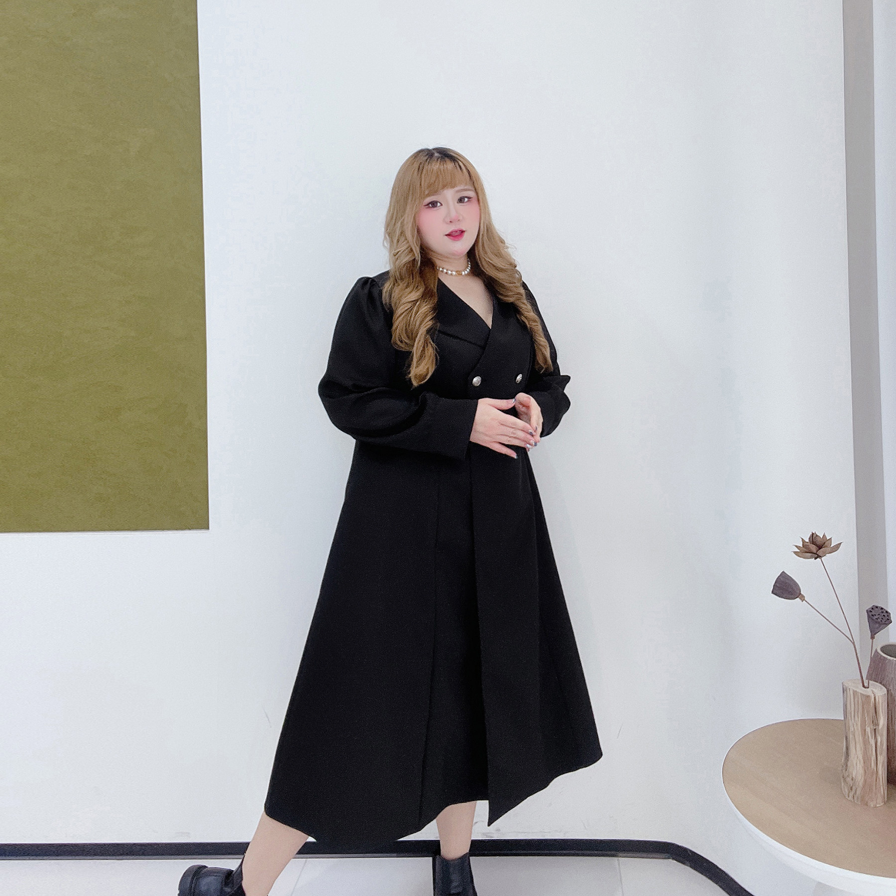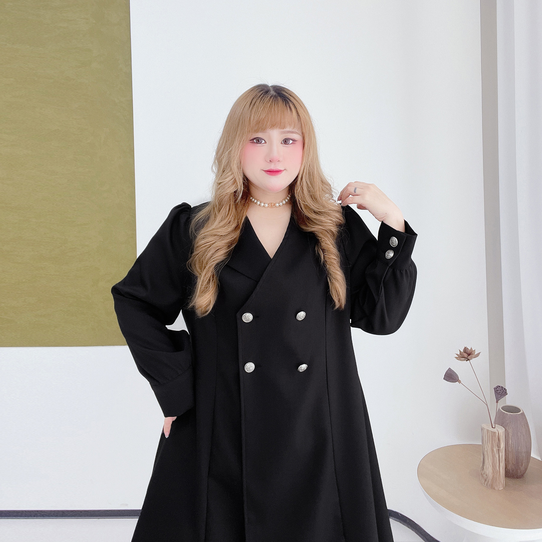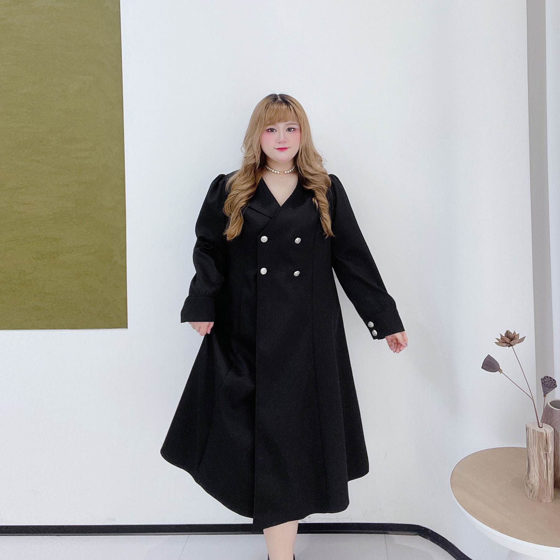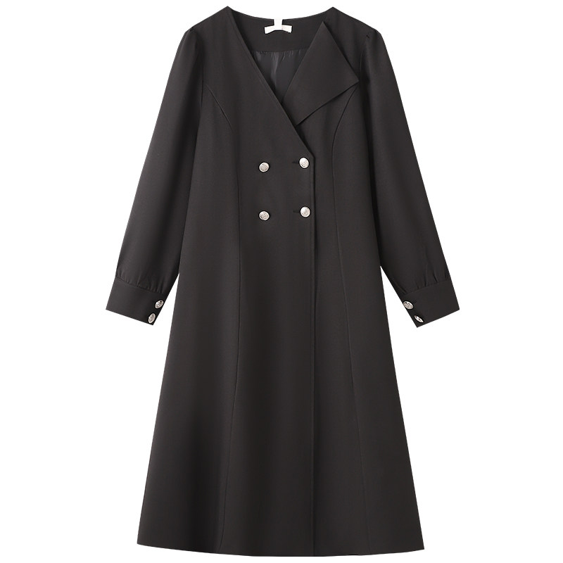 300斤英伦风长款风衣外套胖莹莹大码女装春季加厚遮肉西装连衣裙