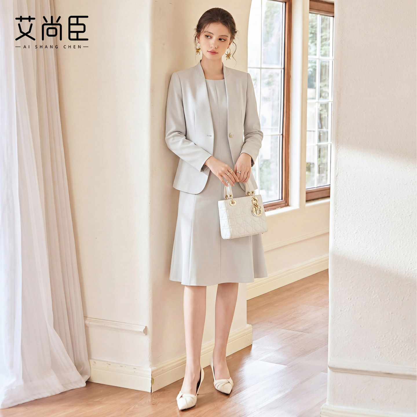 艾尚臣知性优雅风西装套装女春夏通勤职业装外套连衣裙两件套