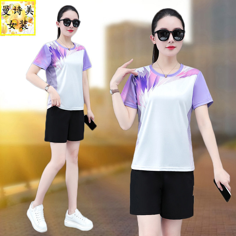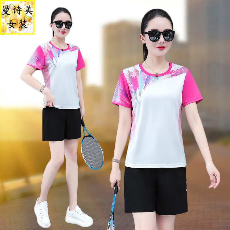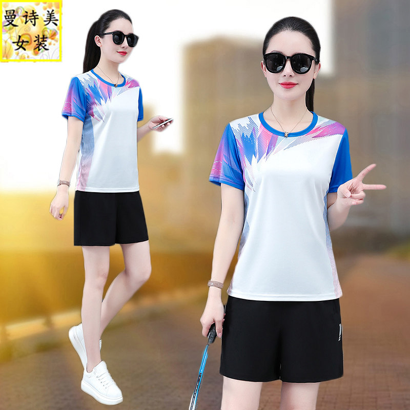 跑步女运动套装夏季2026新款小个子妈妈装短袖短裤两件套羽毛球服