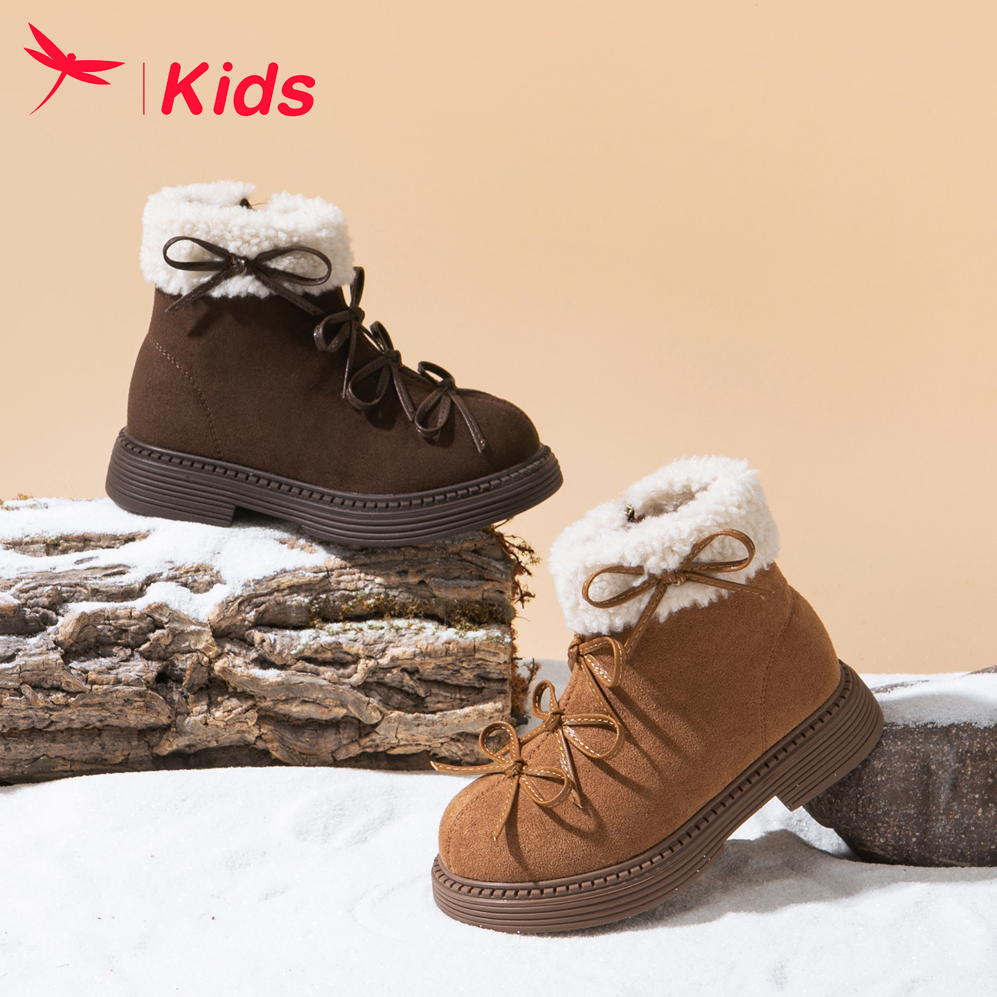 【清仓】红蜻蜓女童鞋儿童雪地靴短靴棉靴2026新款冬季小女孩加绒