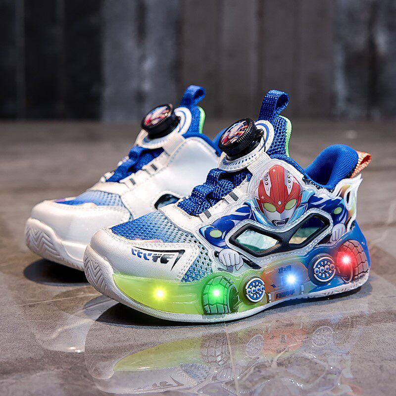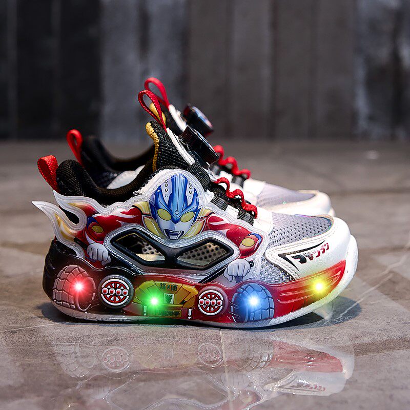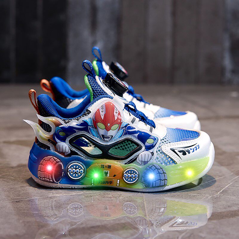奥特曼鞋子男童2025夏季新款迪迦镂空透气网面闪灯发光男孩运动鞋