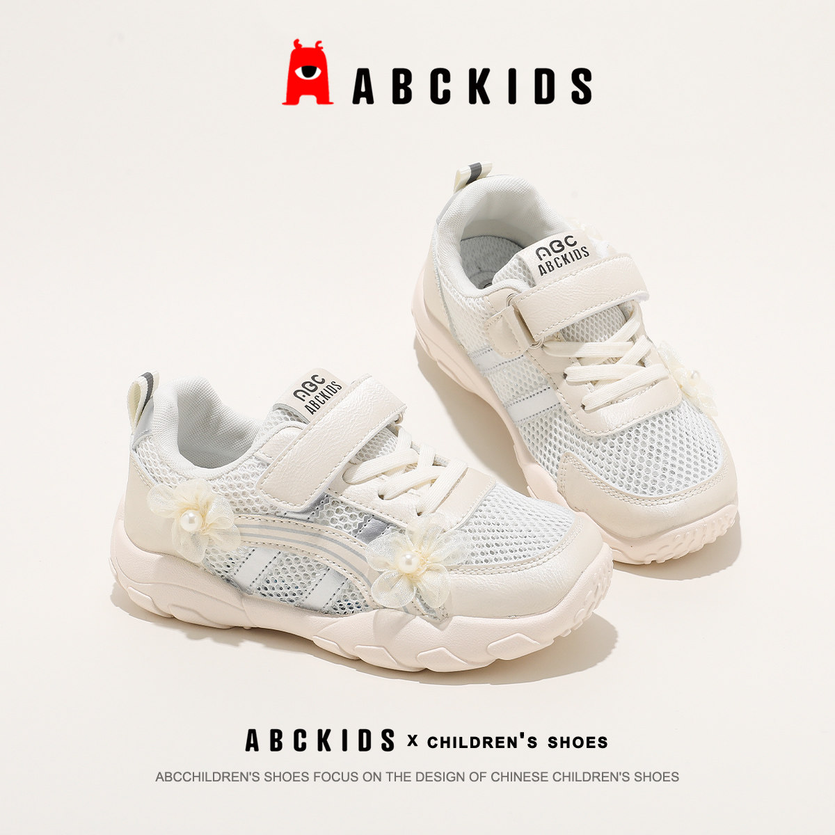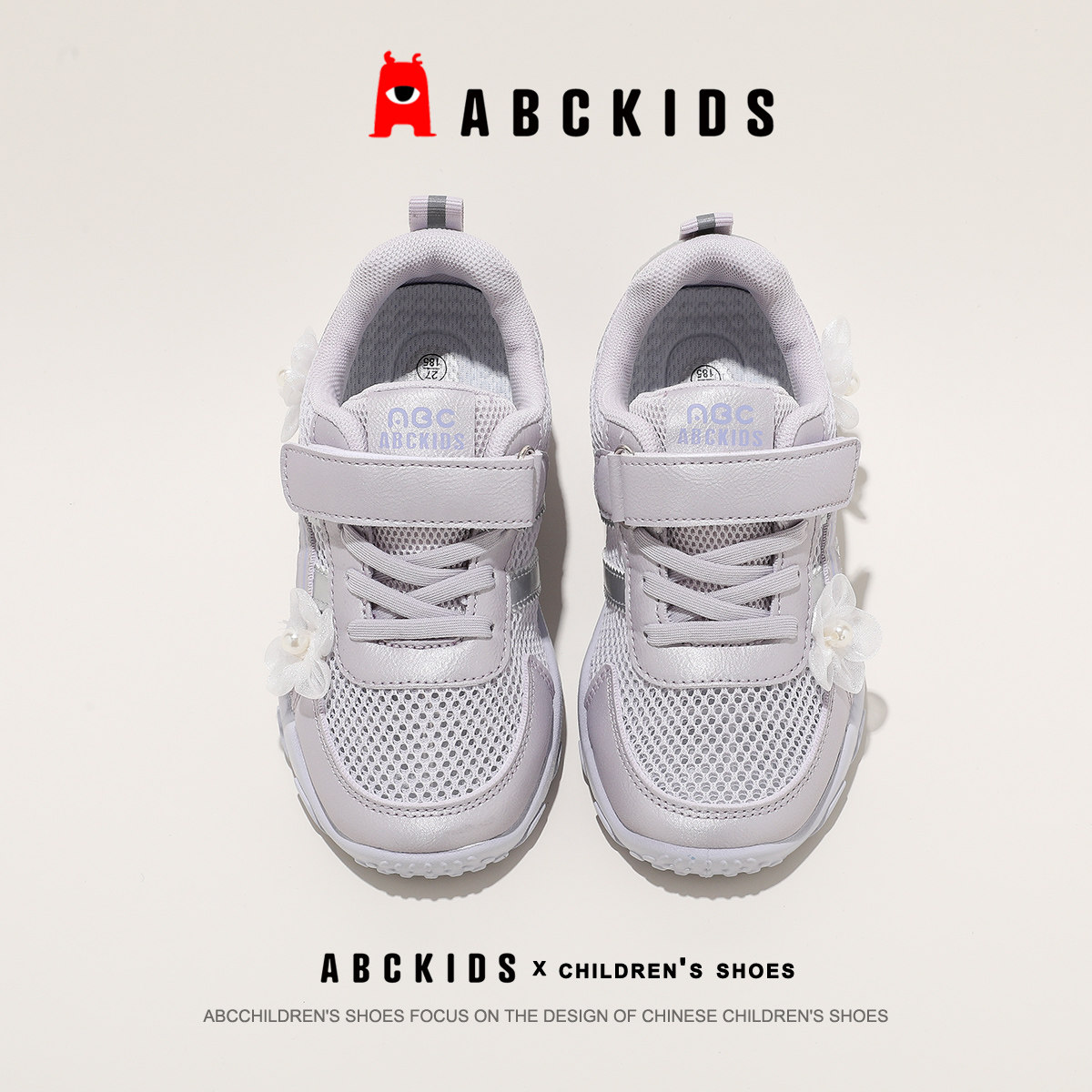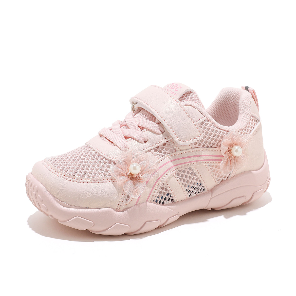 Abckids女童透气网面运动鞋2026夏季新款魔术贴百搭大网眼休闲鞋
