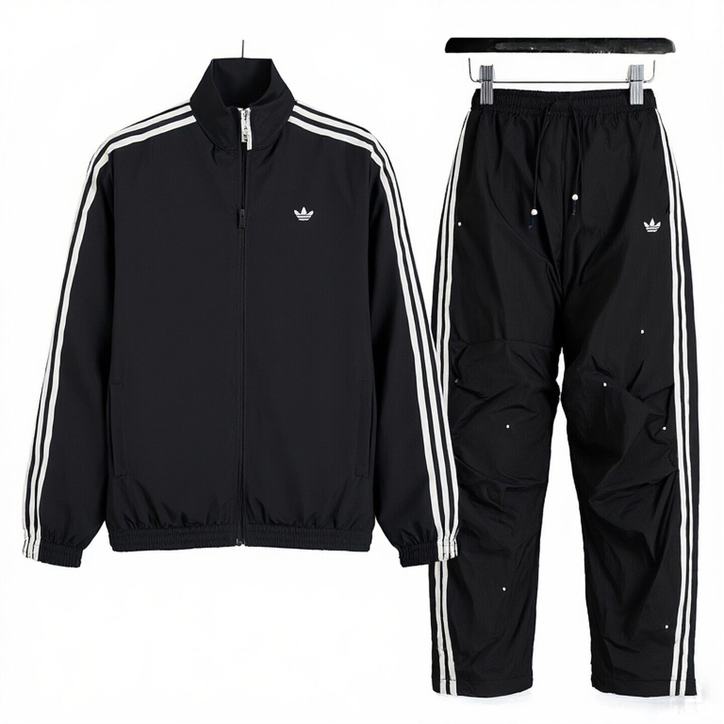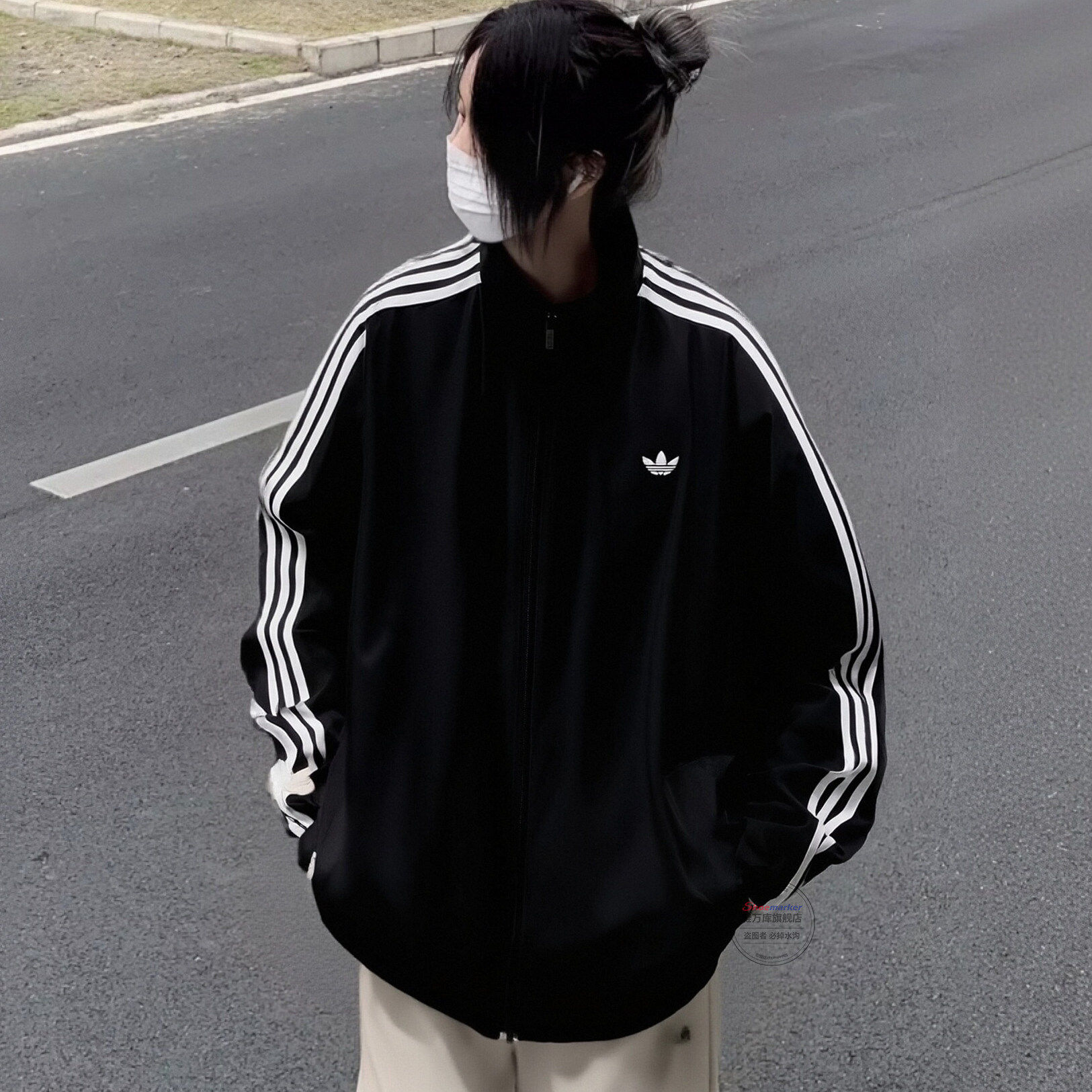 阿迪达斯三叶草男女款套装2026新款三条纹夹克外套宽松长裤运动服