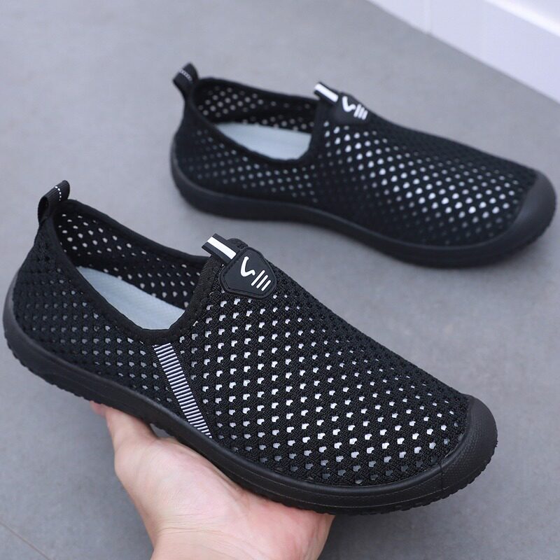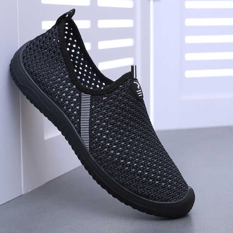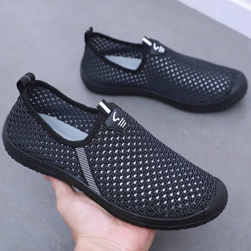 夏季透气薄款男鞋老北京布鞋男网鞋镂空软底防滑爸爸大网眼休闲鞋