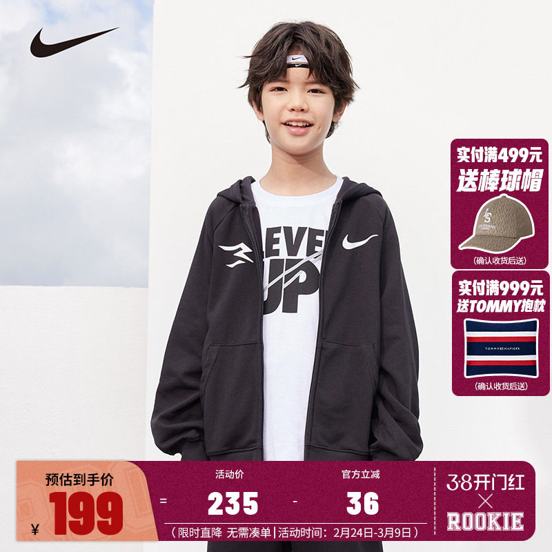 Nike 3brand童装儿童拉链卫衣春秋季新款男童休闲外套潮NY2342057