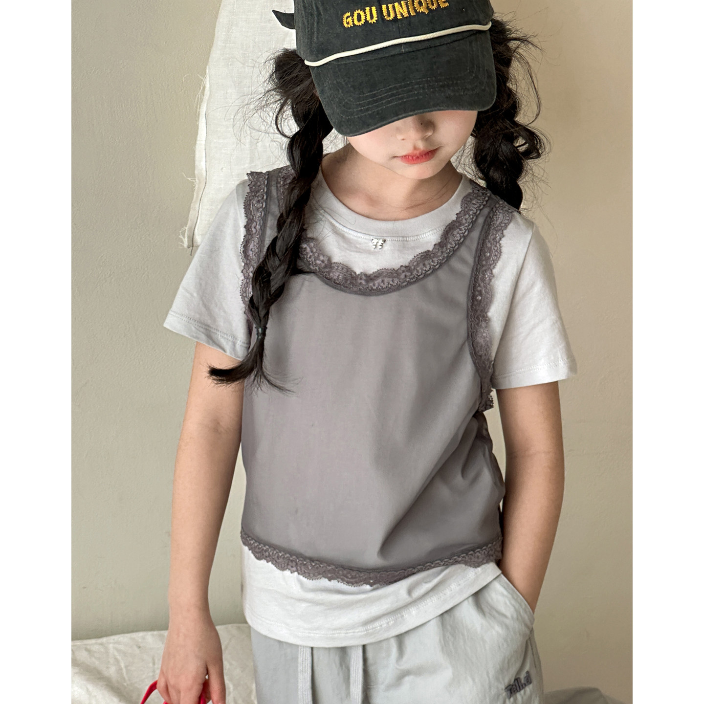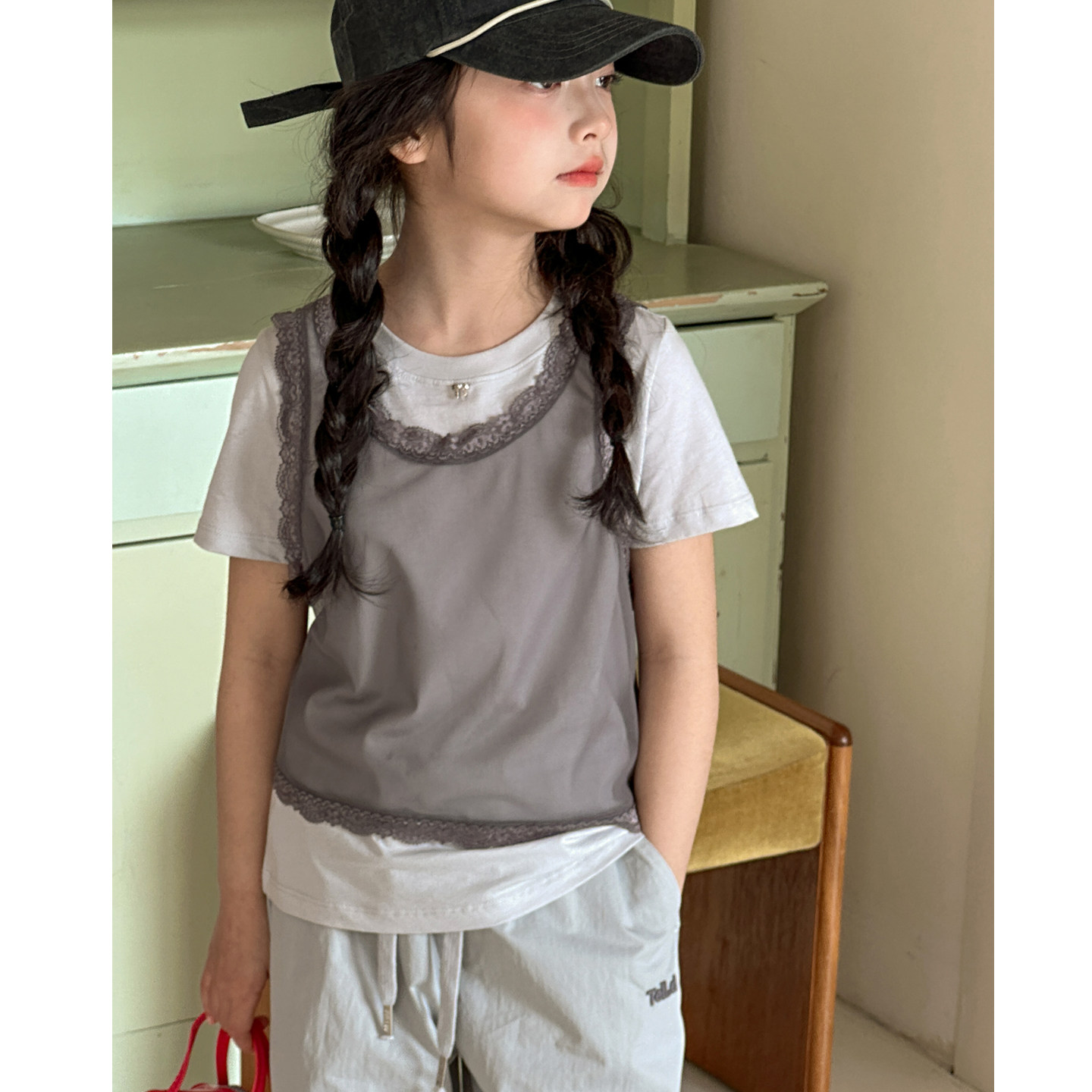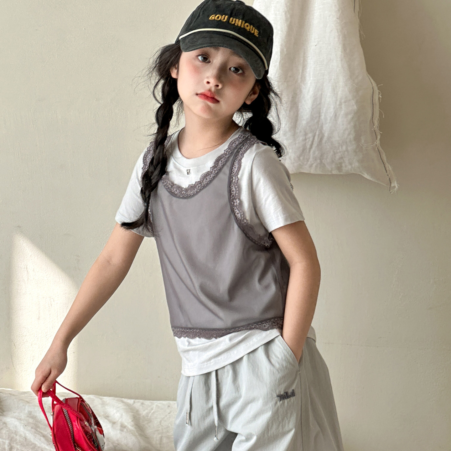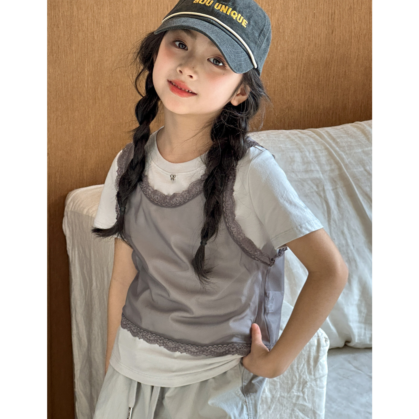 女童短袖t恤2026新款儿童春装洋气打底衫女大童初中生上衣两件套