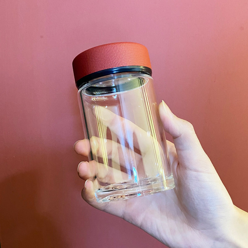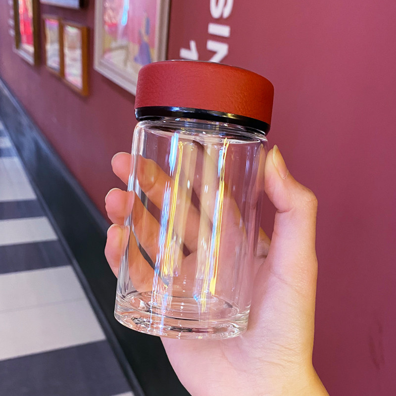 311线报网描述:小巧便携 皮纹质感杯盖 高硼硅玻璃杯体