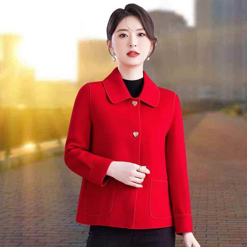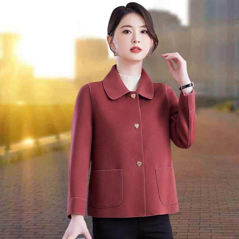 酒红色羊绒呢子大衣女冬季短款小个子高级感气质羊毛双面毛呢外套