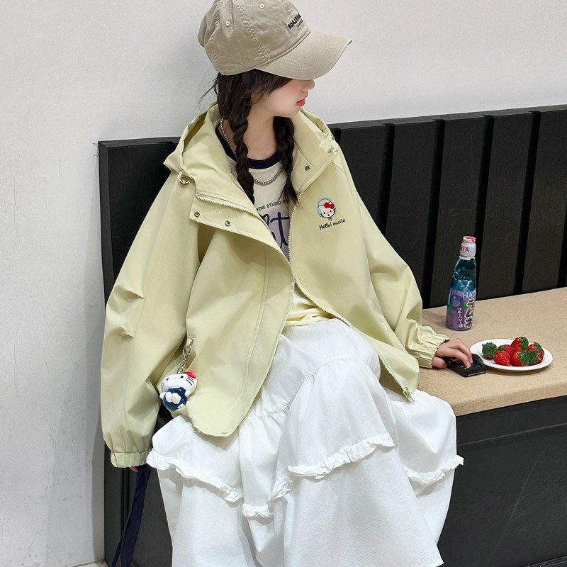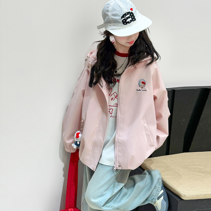 女童外套春秋2026新款中大儿童超好看春季女孩初中生春装连帽风衣