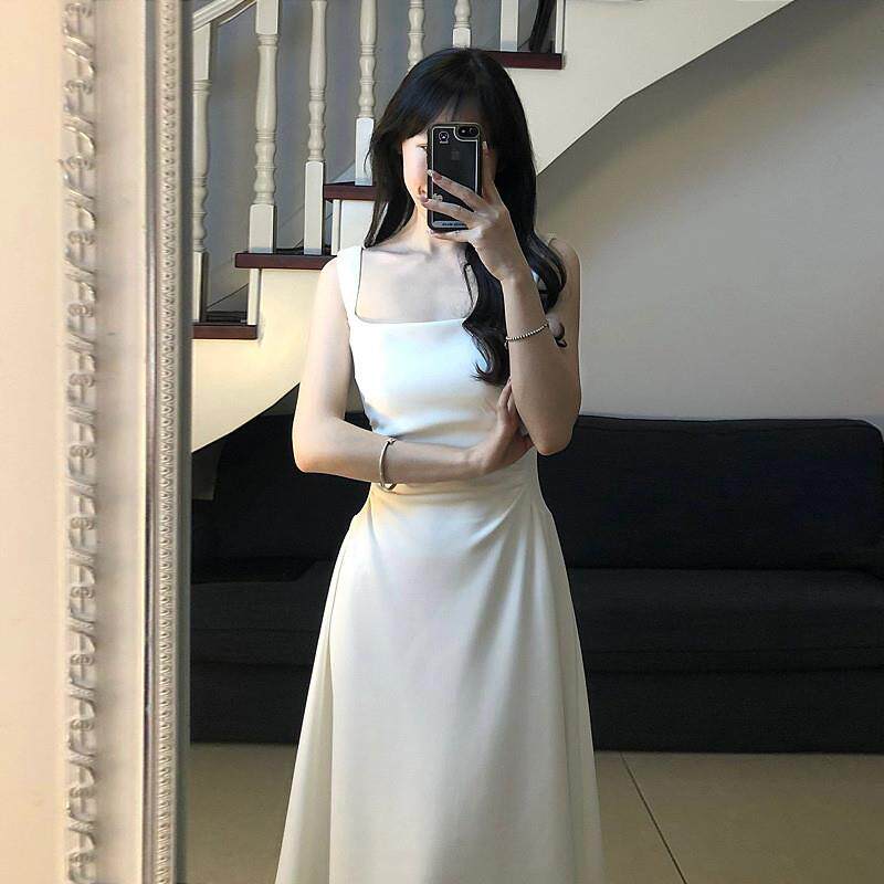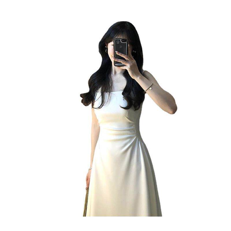 法式收腰白色吊带连衣裙子感高级感长裙2025新款夏季小个子仙女裙