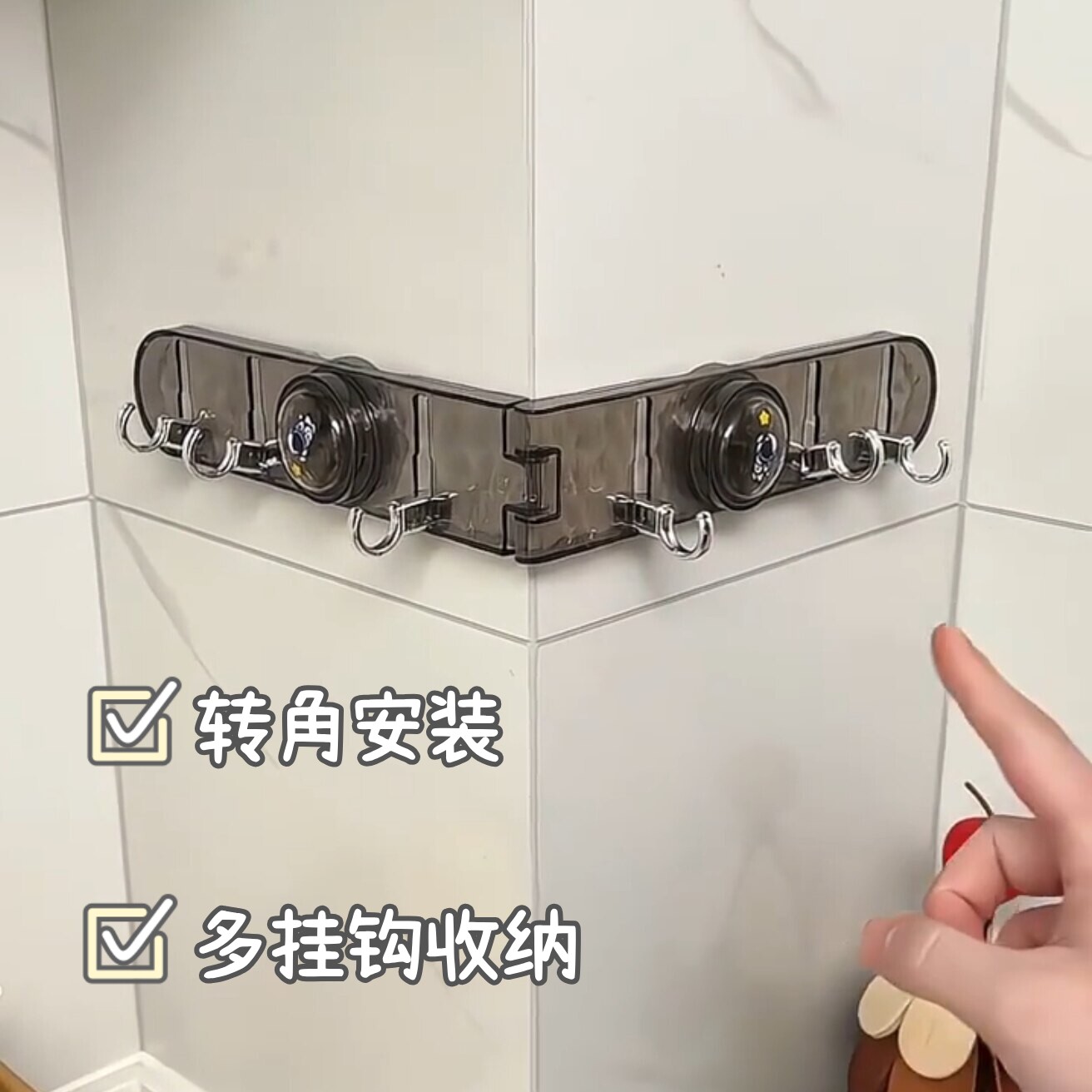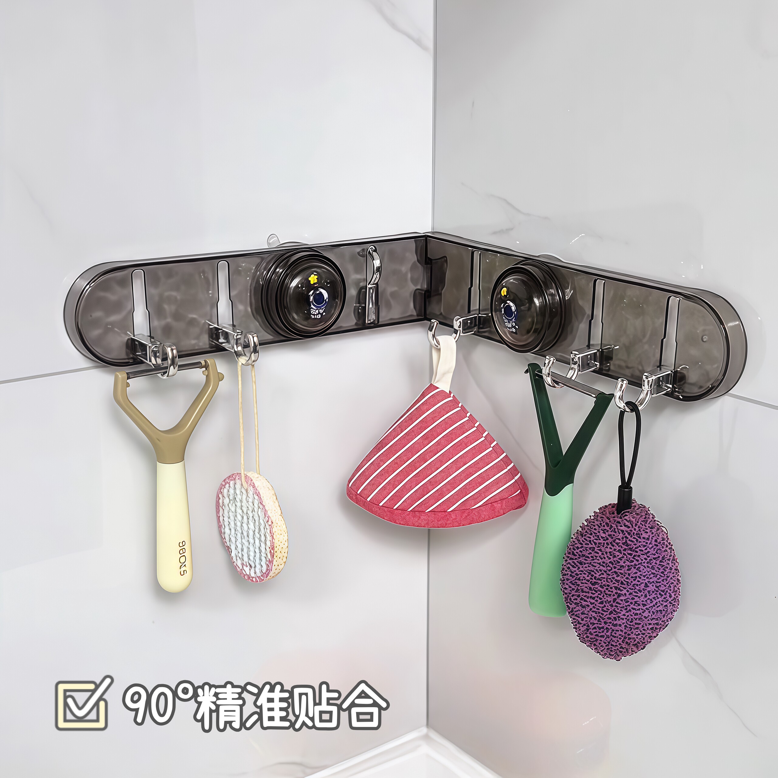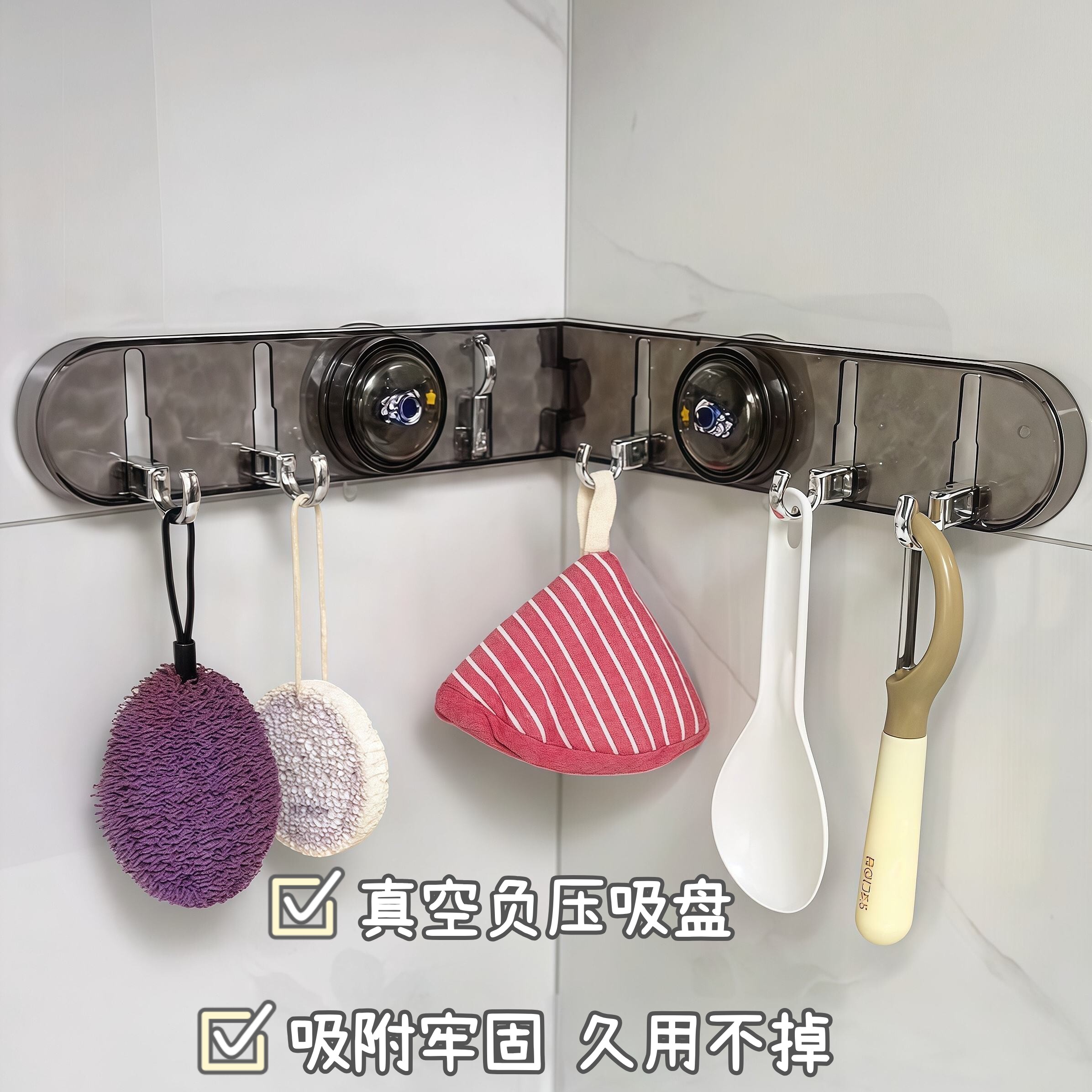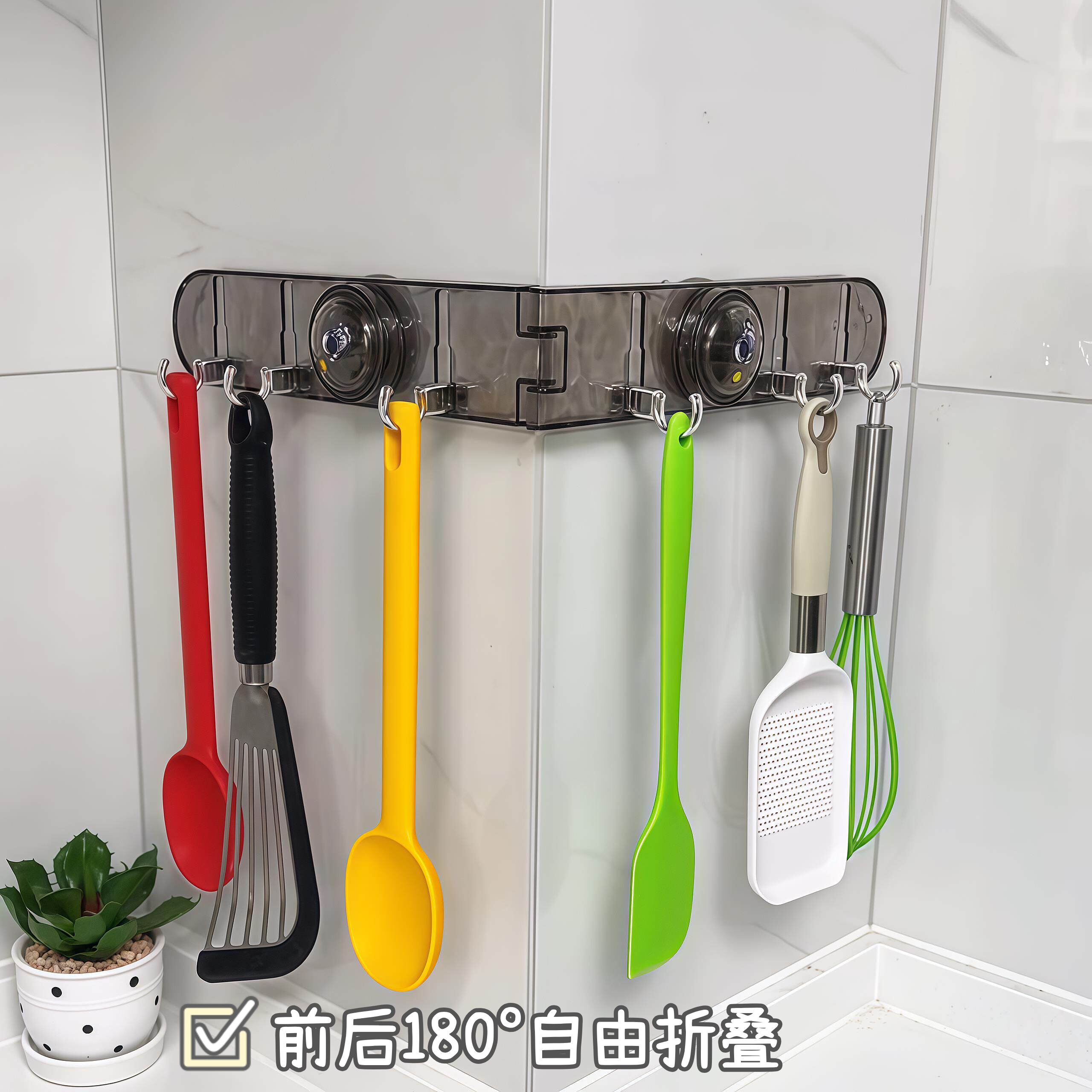 厨房转角吸盘联排挂钩免打孔强力承重无痕粘钩可折叠墙面厨具挂架