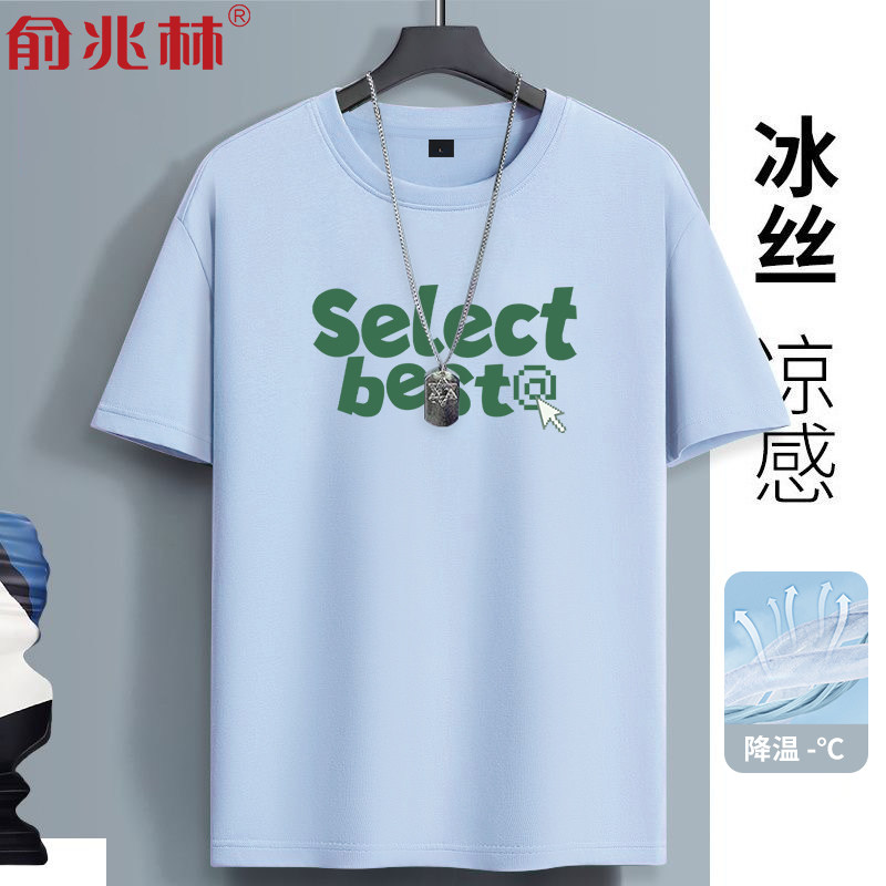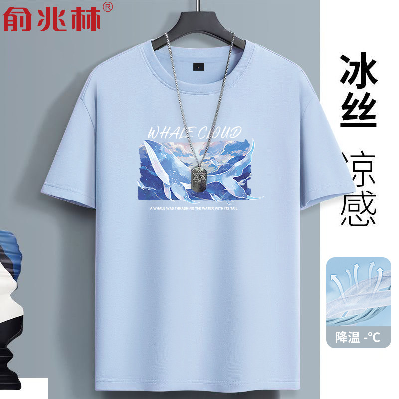 蓝色冰丝短袖t恤男速干透气2025新款青少年高中初中生半袖衣服潮