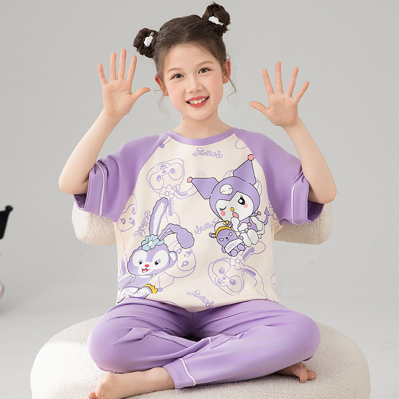 青少年女孩睡衣纯棉夏季薄款短袖长裤初中学生夏款家居服女童套装