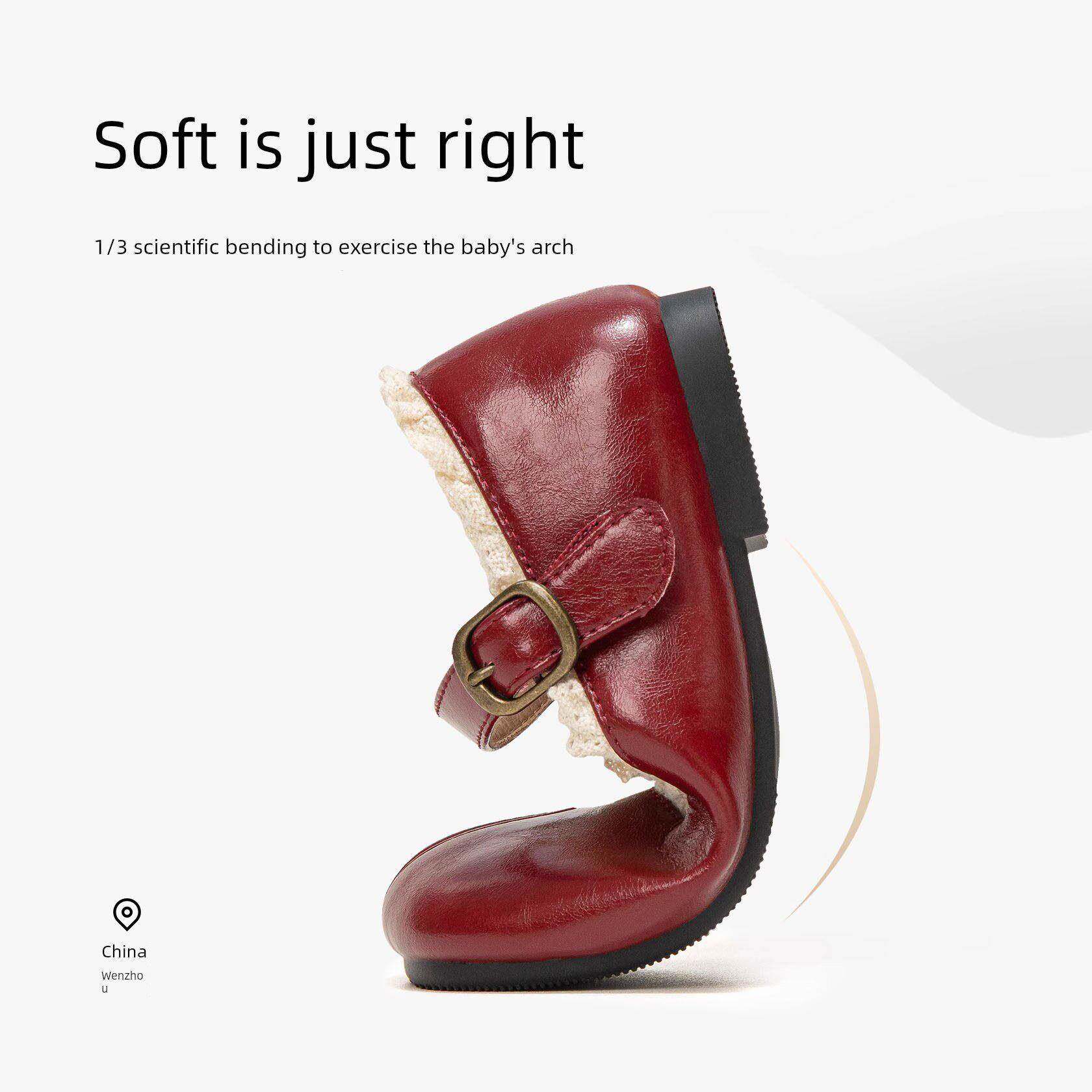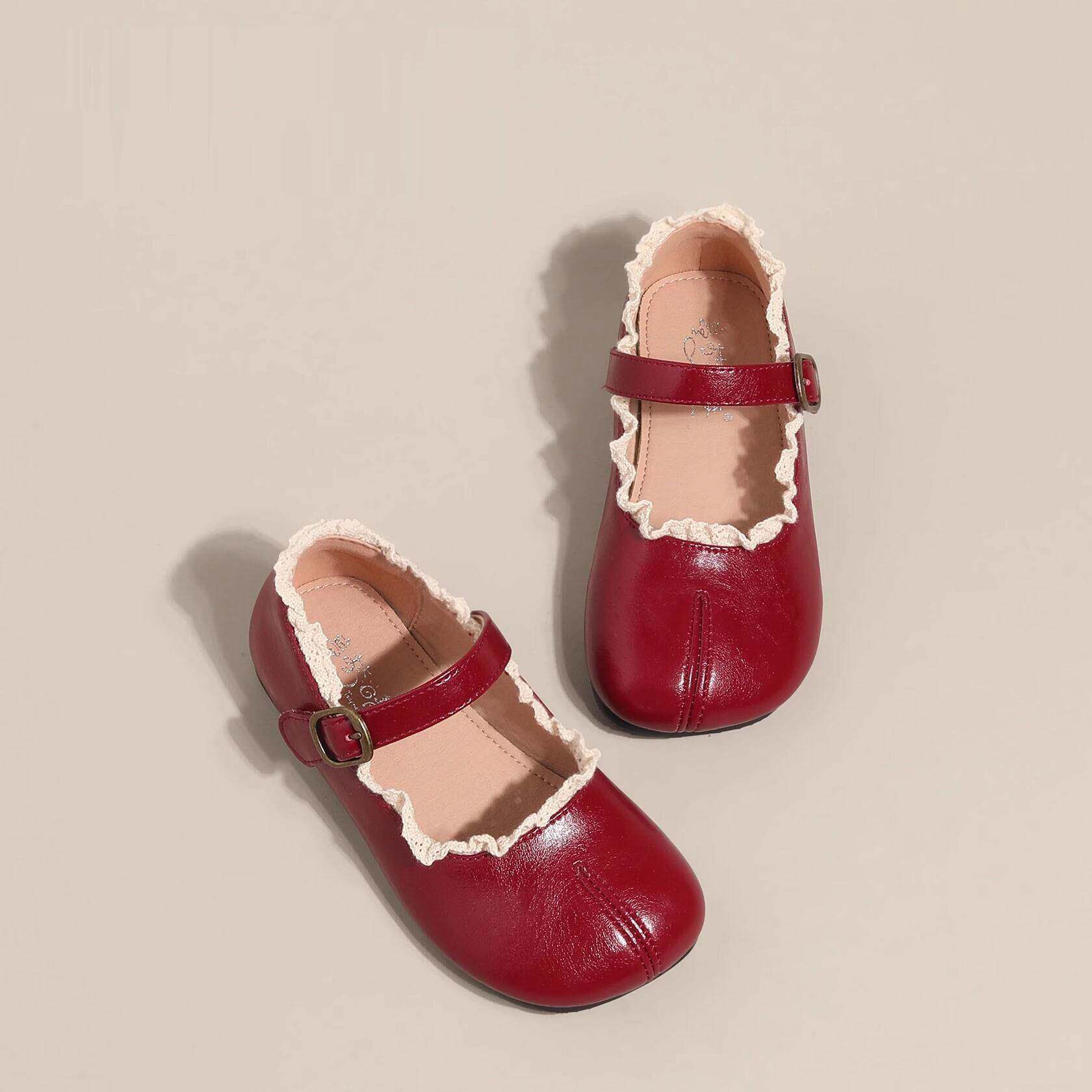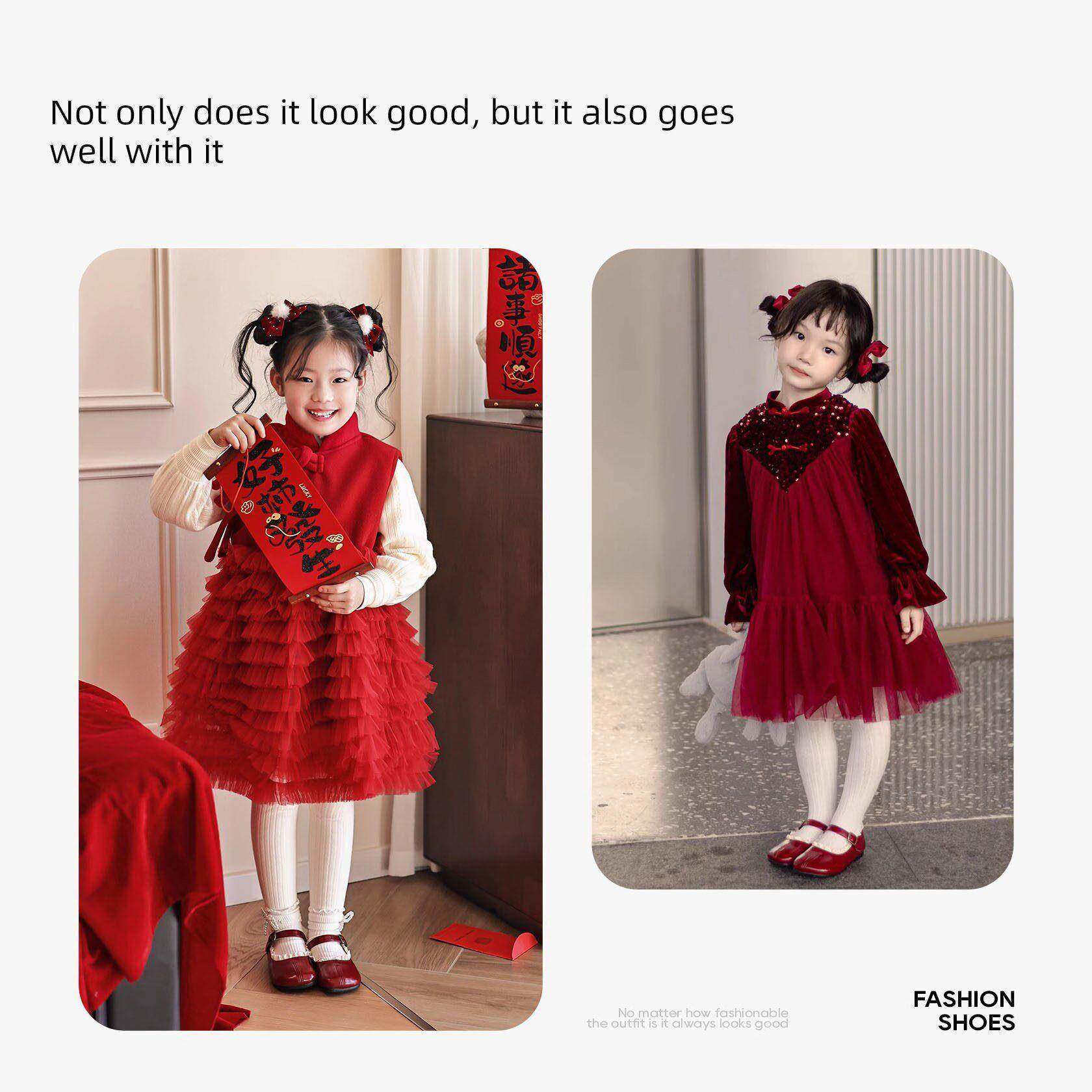 VTVK女童红色小皮鞋儿童公主鞋2025新款女宝单鞋软底演出真皮鞋子