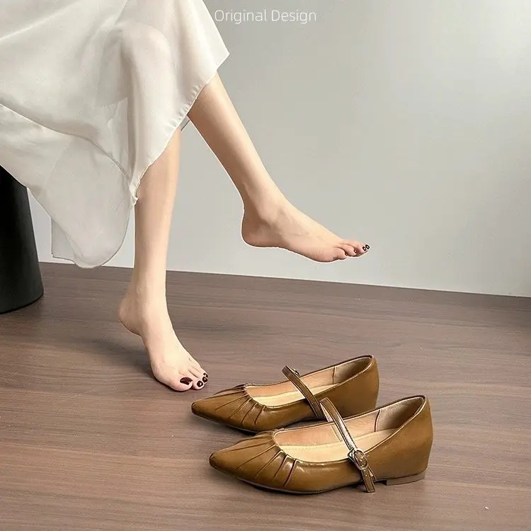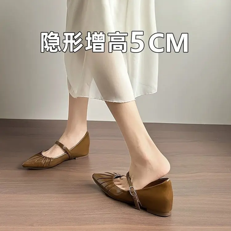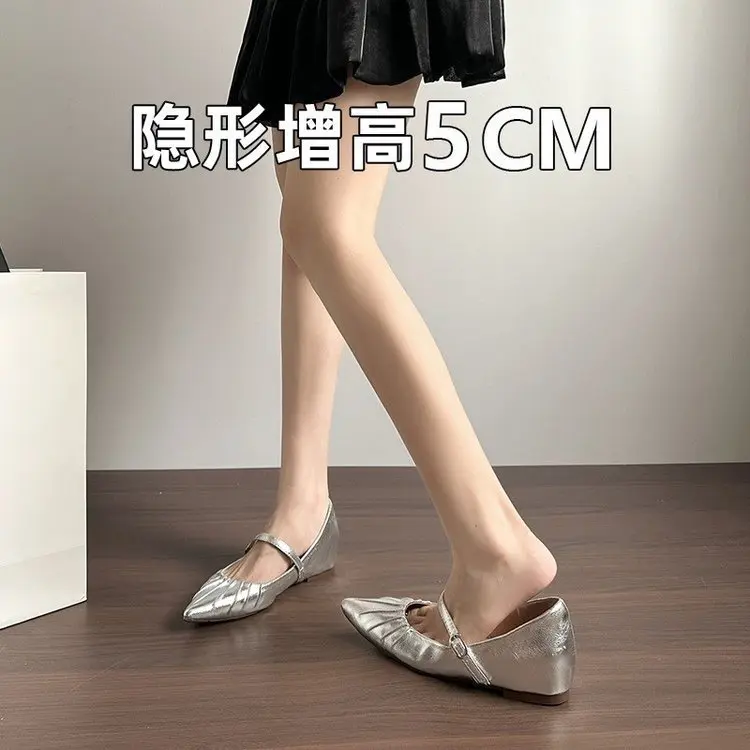 小个子内增高银色尖头单鞋女2025新款浅口法式厚底软底玛丽珍女鞋