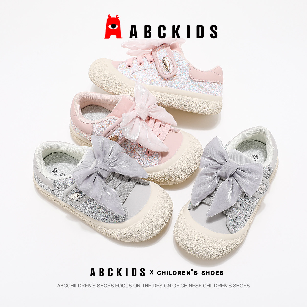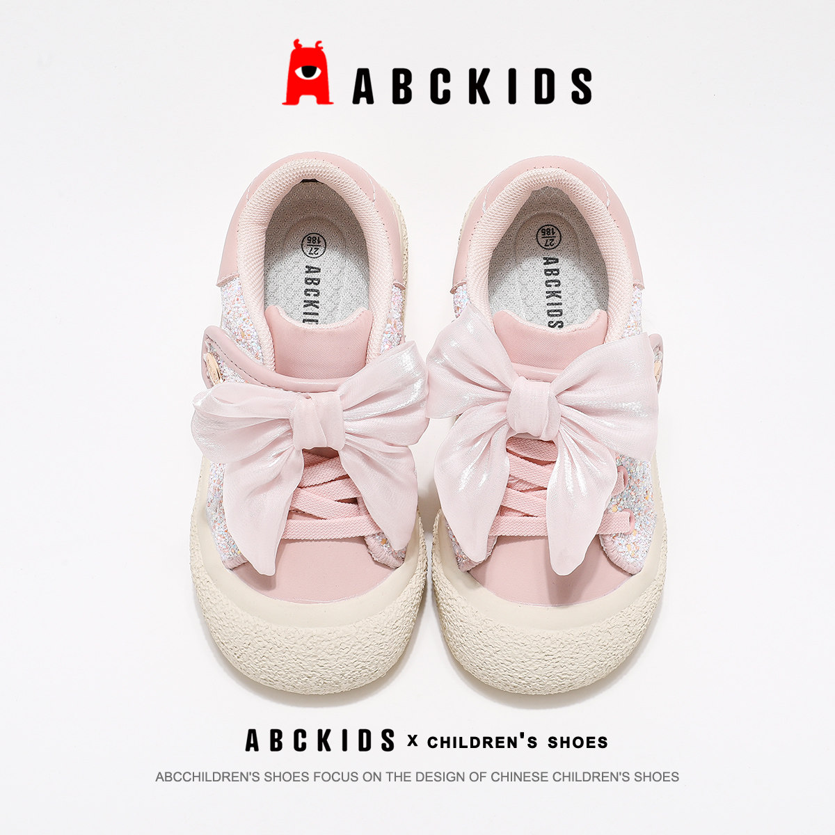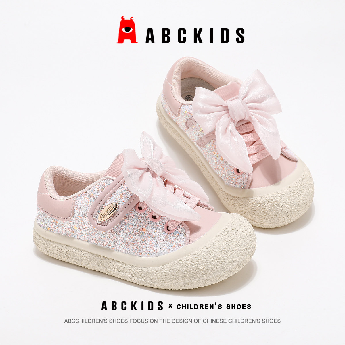 ABCkids童鞋女童板鞋春夏款蝴蝶结轻便公主鞋魔术贴儿童运动鞋女