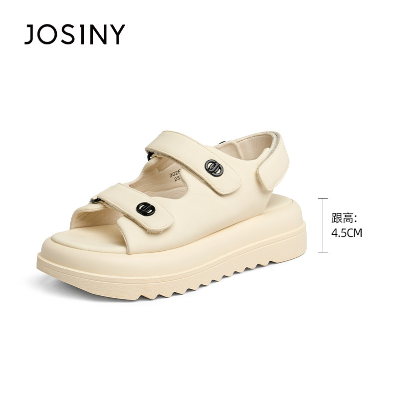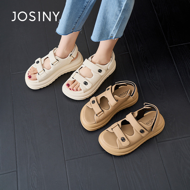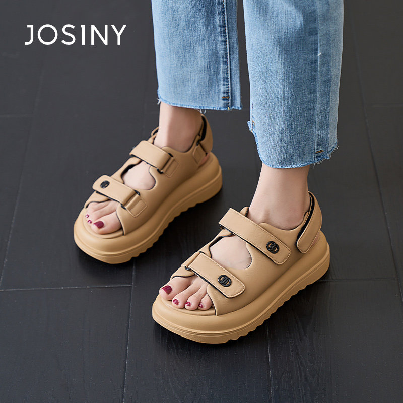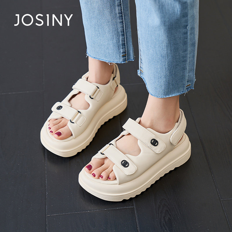 卓诗尼夏季新款女鞋子女士凉鞋圆头松糕底魔术贴休闲日常小香风