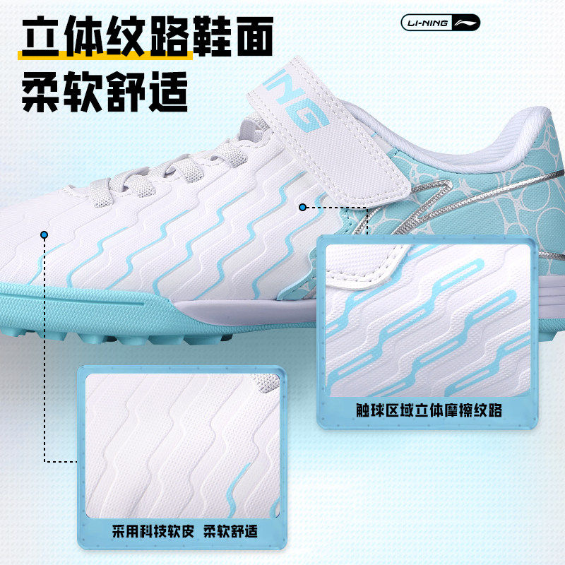 李宁儿童足球鞋男童女孩碎钉TF魔术贴正品青少年小学生专用训练鞋