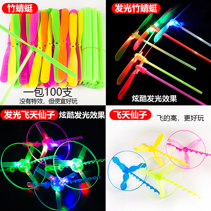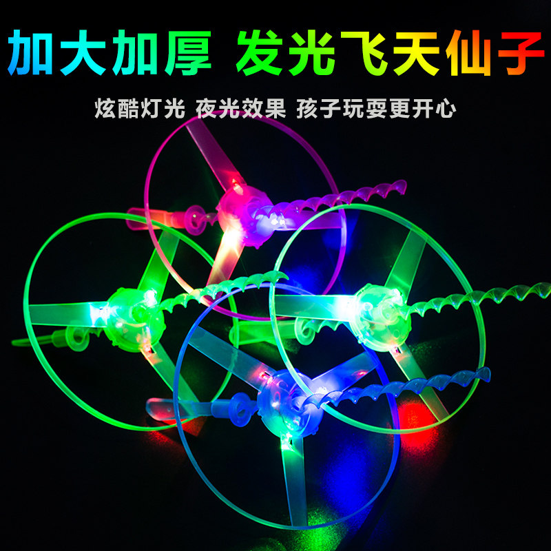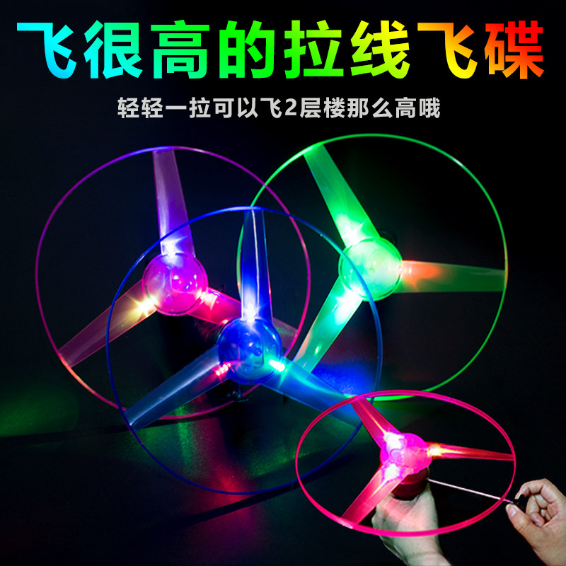 飞天仙子户外手拉线飞碟陀螺儿童飞盘软发射飞行器发光竹蜻蜓玩具