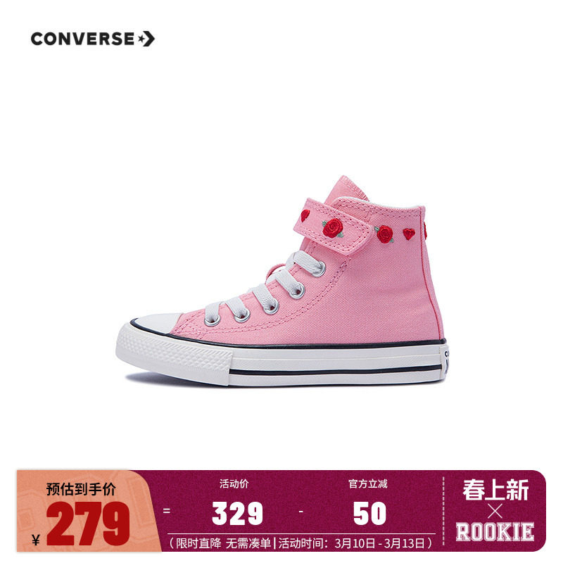 匡威童鞋儿童帆布鞋女童粉色鞋子魔术贴高帮爱心休闲鞋潮A10714C