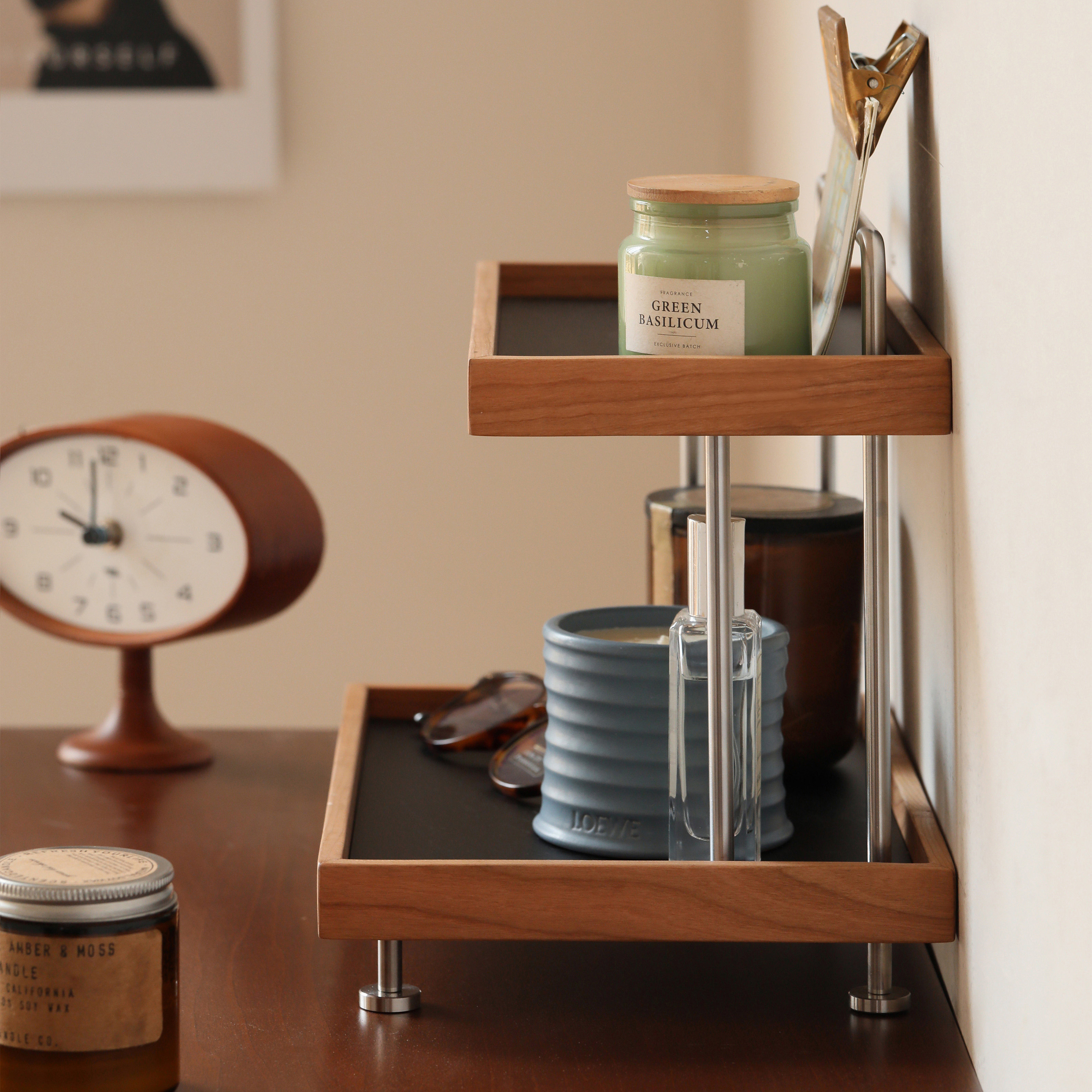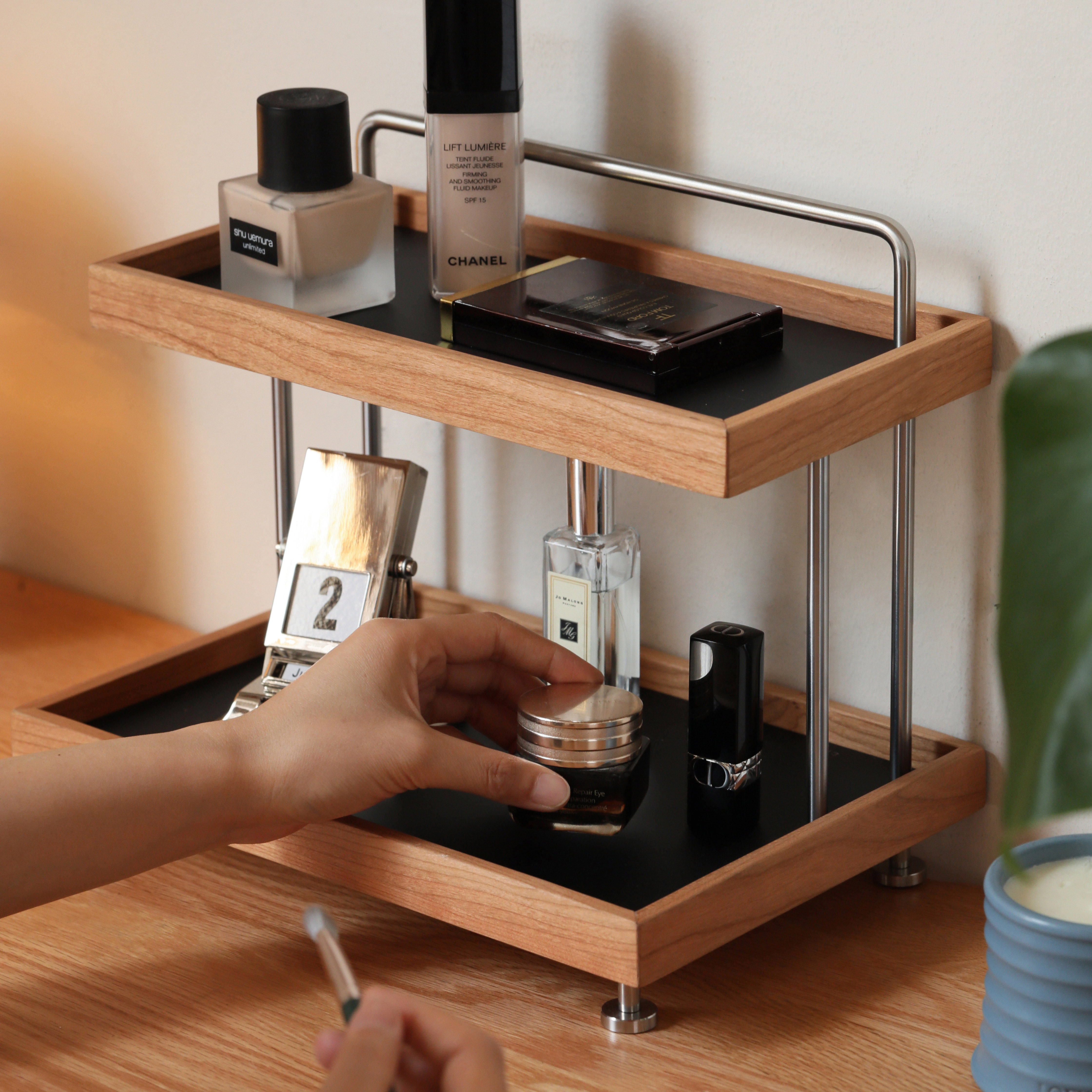 斗合原创中古风樱桃木化妆品收纳架多功能桌面整理杯子香水置物架