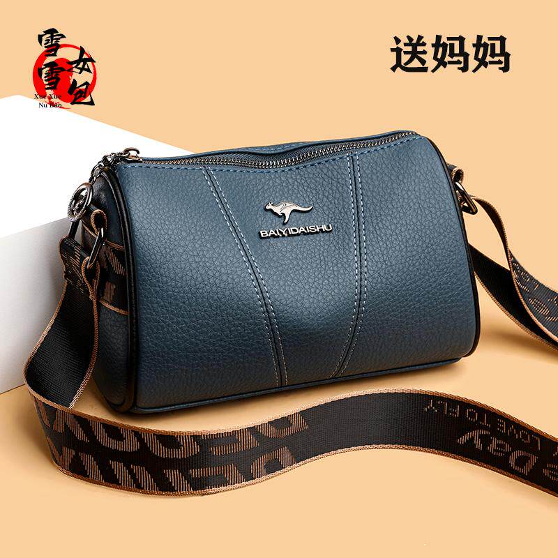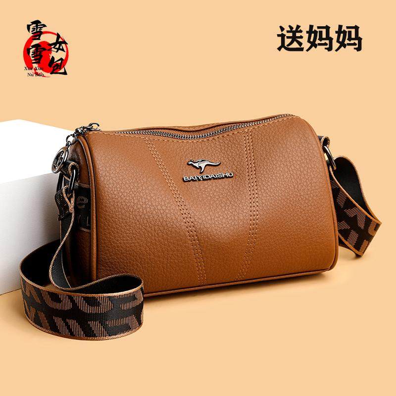 真皮女式枕头包2025新款时尚简约软皮斜挎包宽肩带中年妈妈单肩包