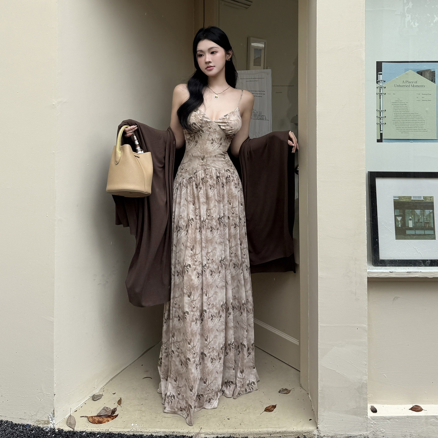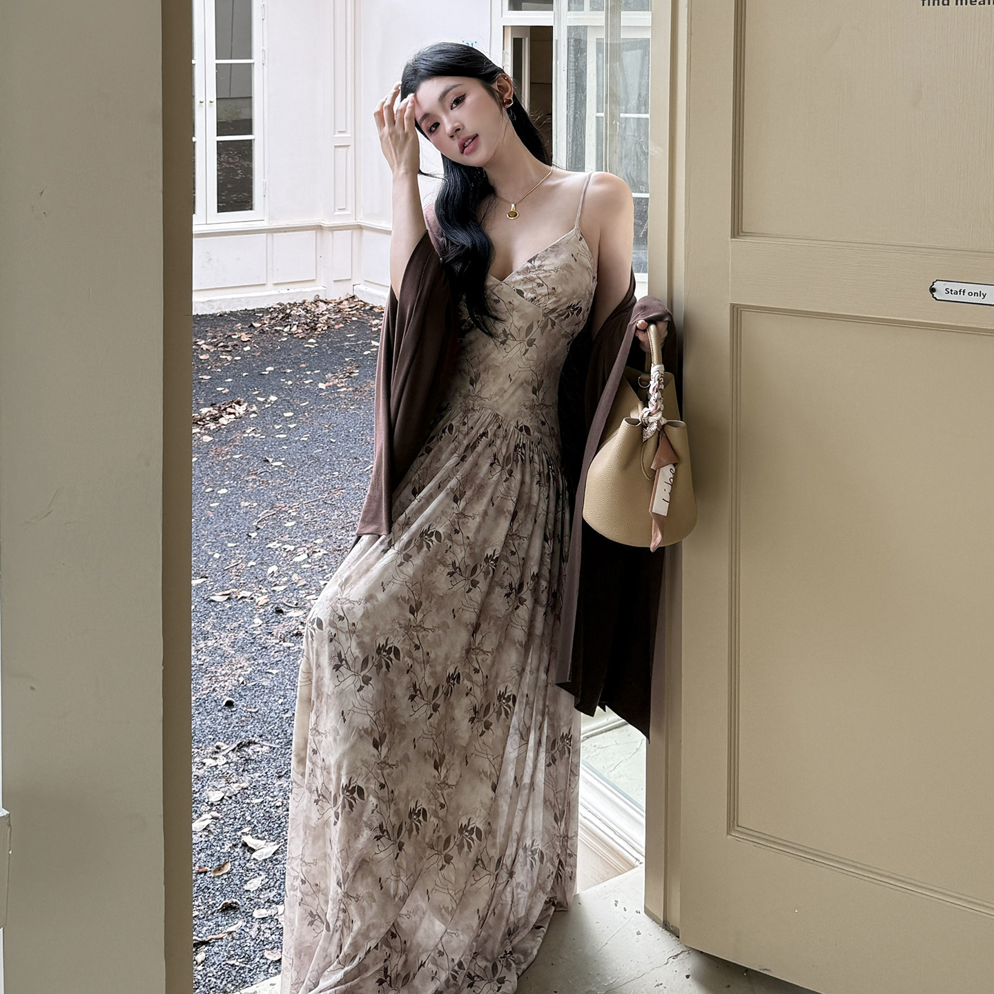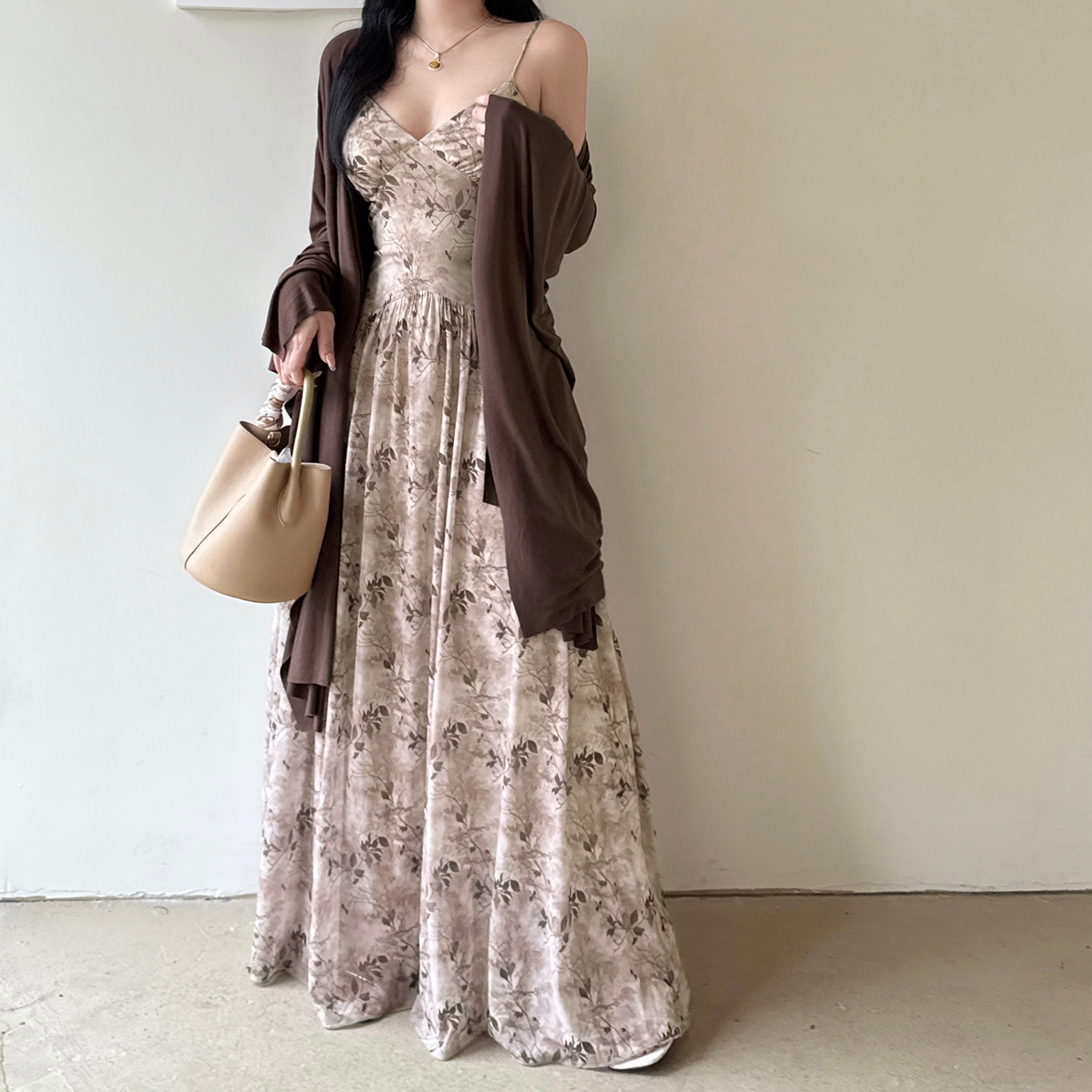 GirlsAt18 禅意新中式吊带连衣裙春季新款气质修身长裙开衫两件套