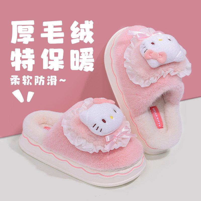 可爱棉拖鞋女士2025冬季新款儿童居家毛绒保暖亲子凯蒂猫棉鞋女款