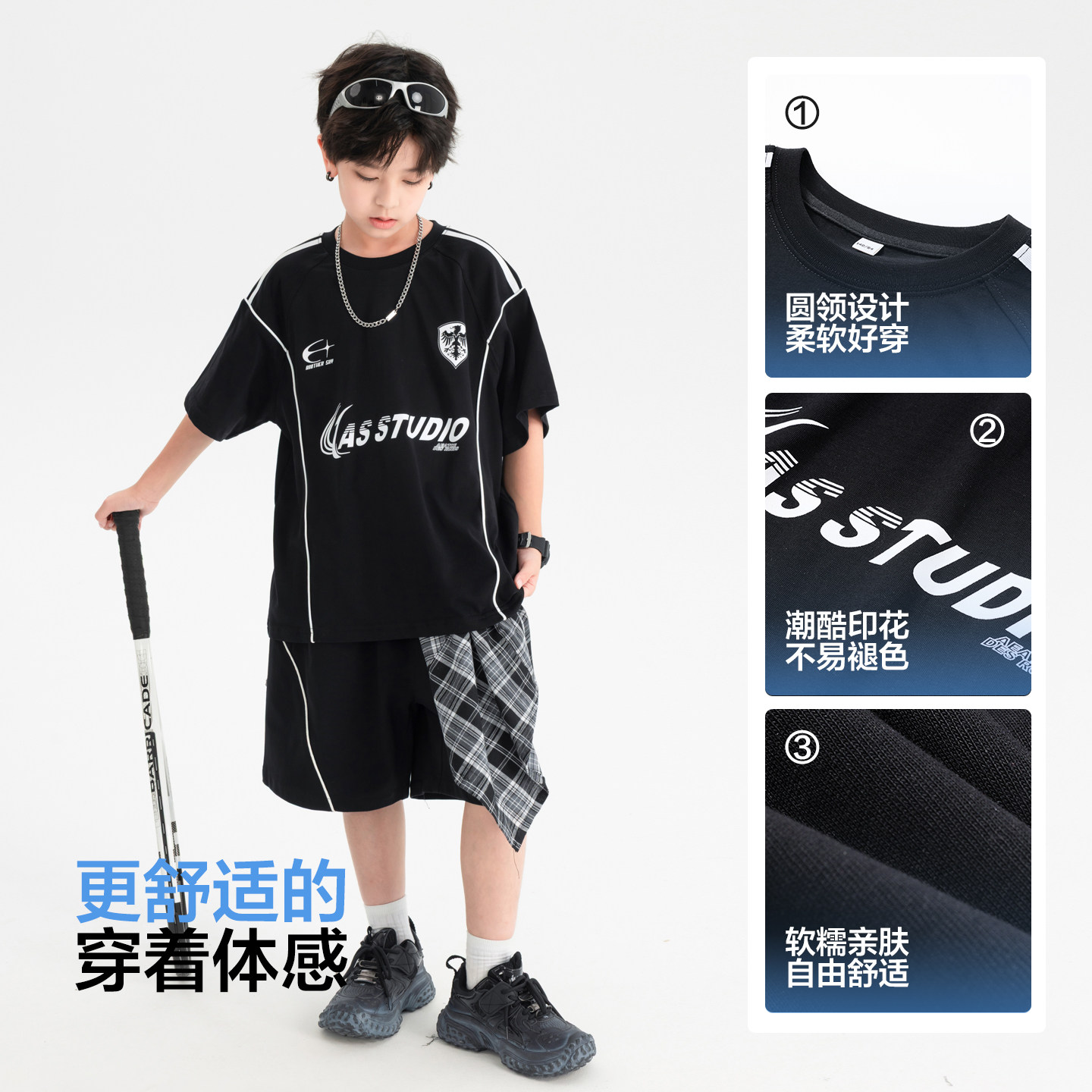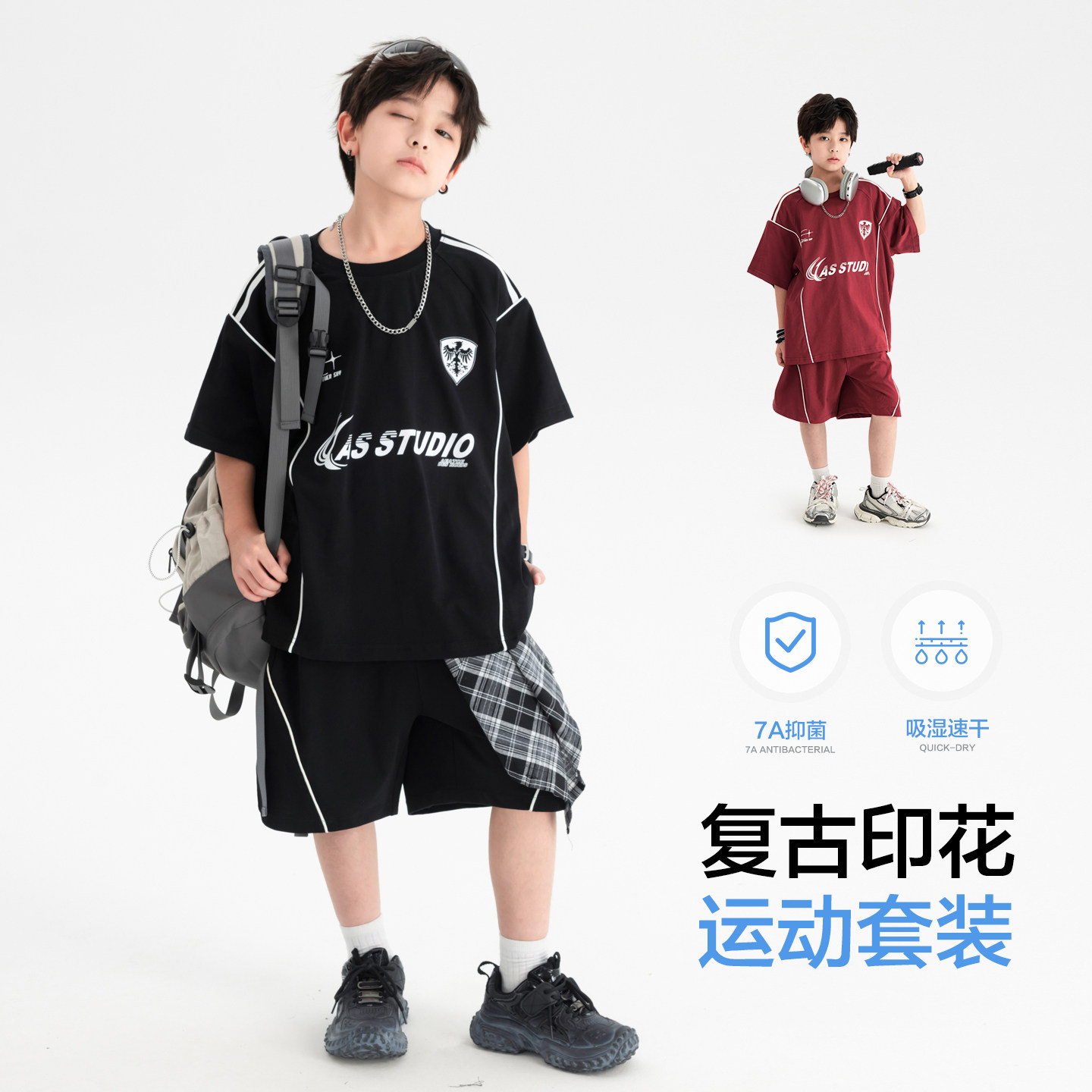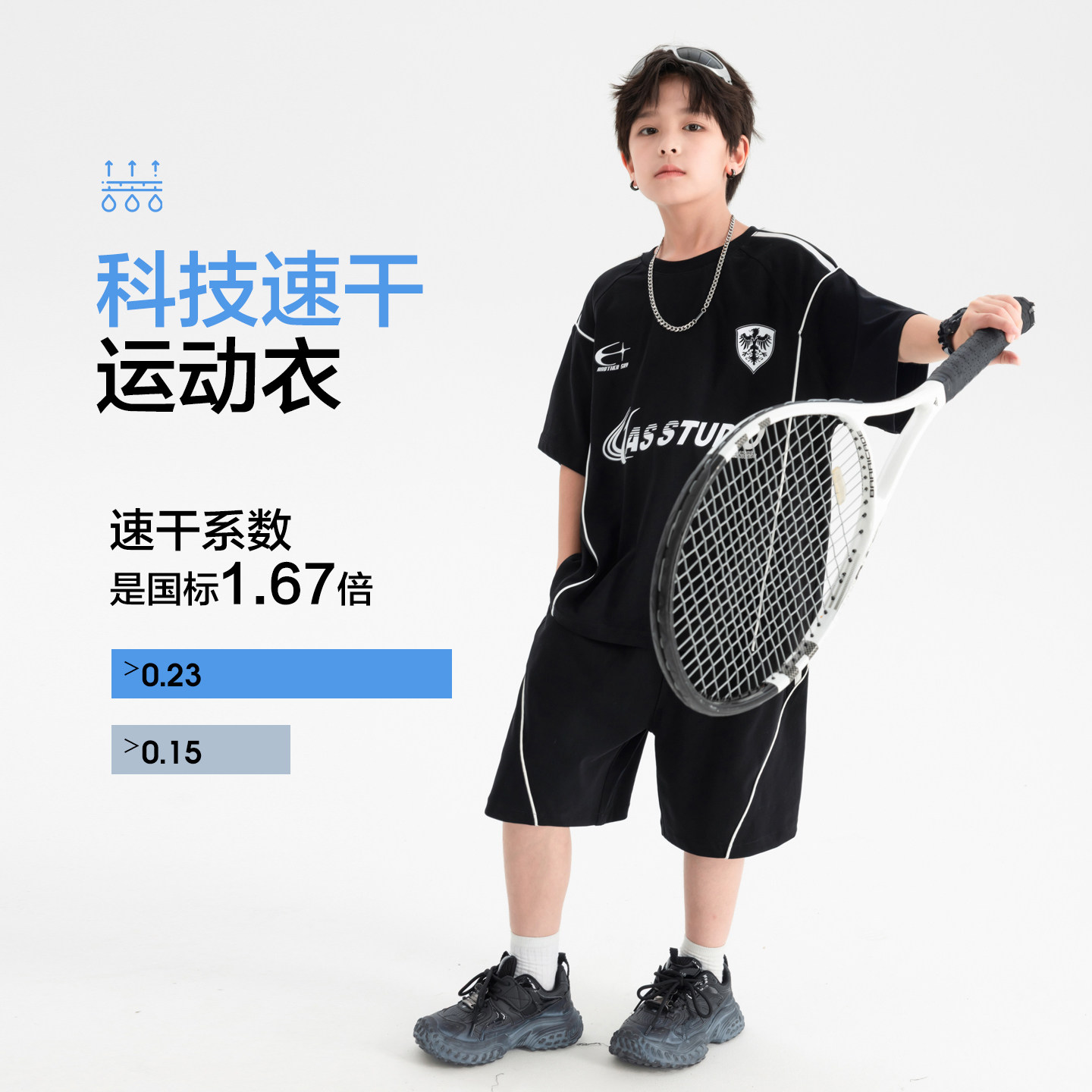 男童夏装机车风运动速干短袖套装2026新款青少年儿童冰丝宽松衣服
