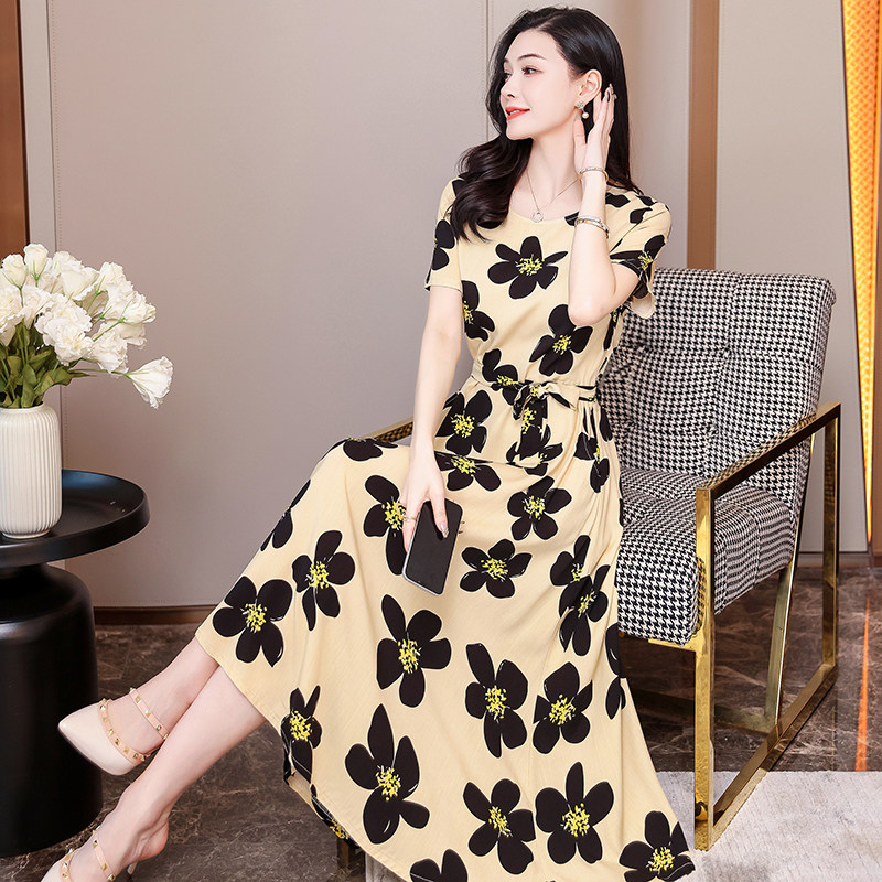 2026新款棉麻连衣裙夏天薄款大码女装高端妈妈气质碎花棉绸长裙子