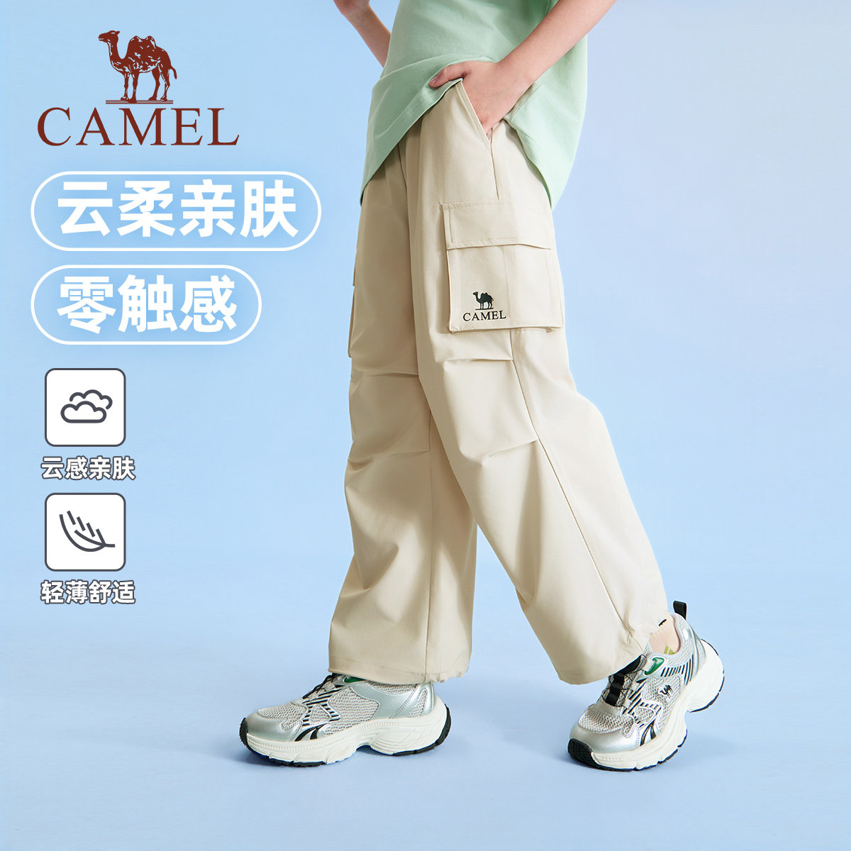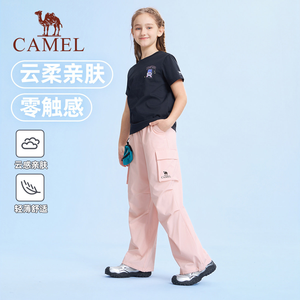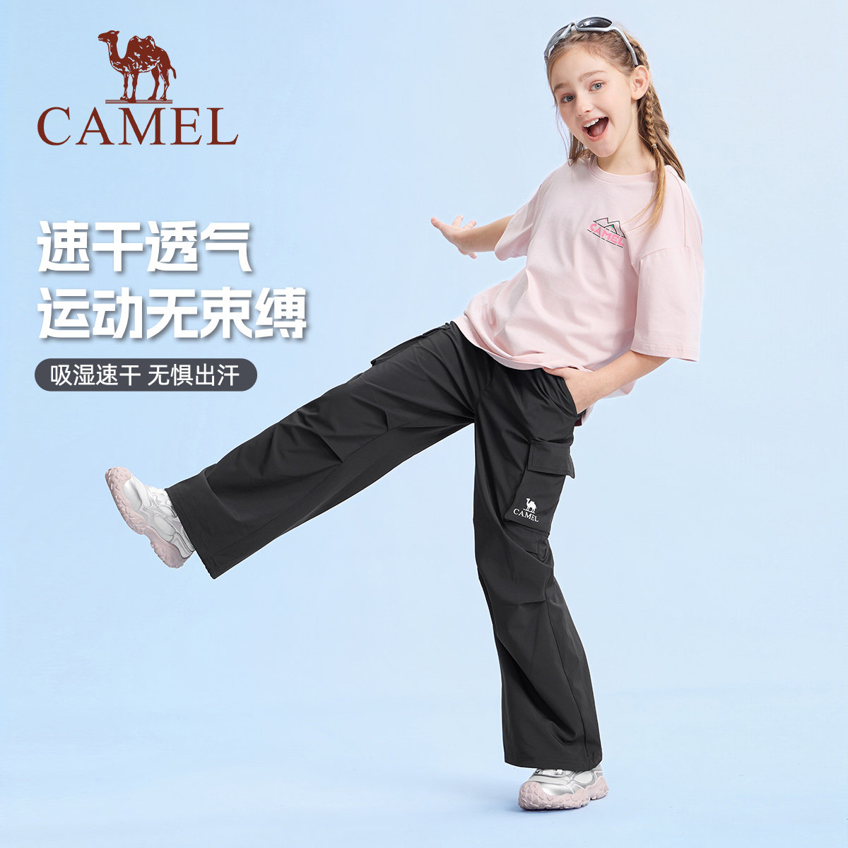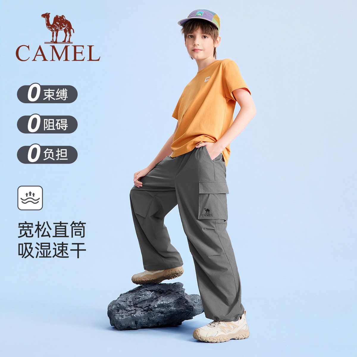 小骆驼儿童工装裤速干裤2026春夏新款阔腿裤子男女童户外运动长裤