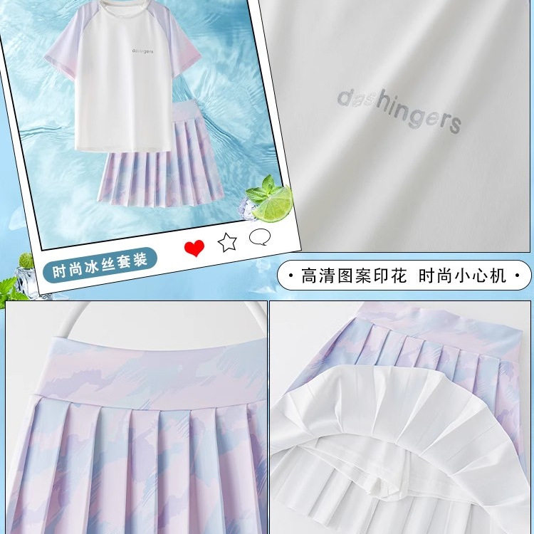 女童运动速干衣套装儿童夏季冰丝网球裙大童夏天短袖训练服中大童
