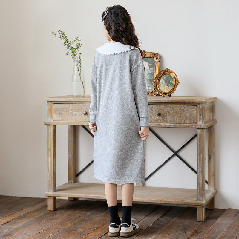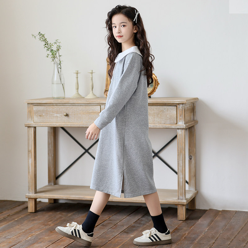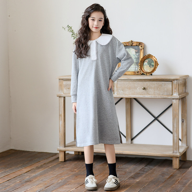 中大女童连衣裙长袖2026春装新款中长款体闲宽松卫衣裙子女孩洋气