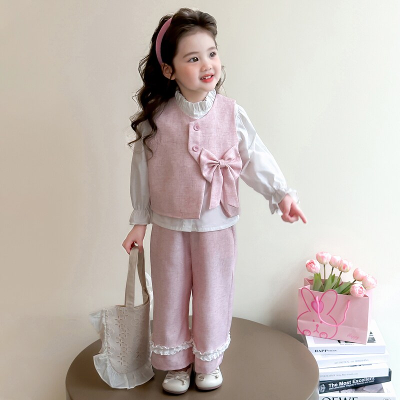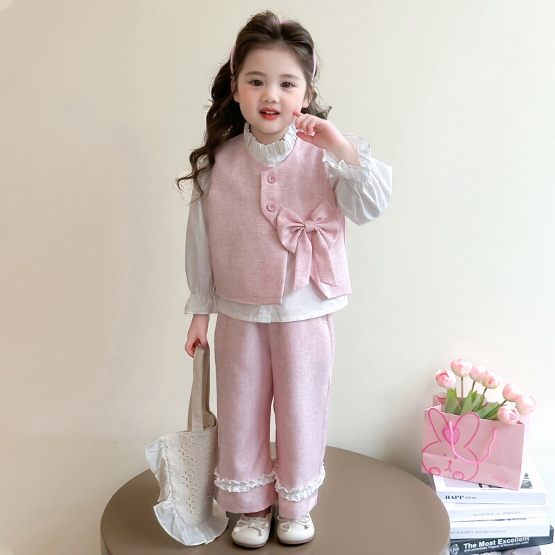 女童秋装套装2025新款时髦洋气儿童装衣服女宝宝春秋季马甲三件套