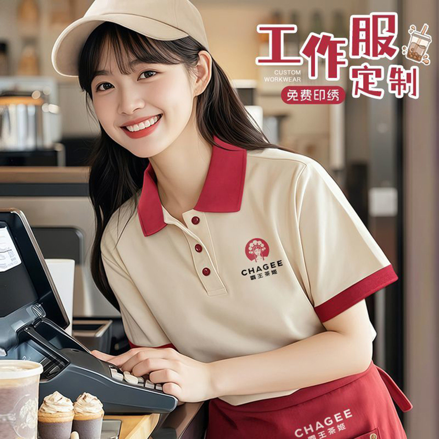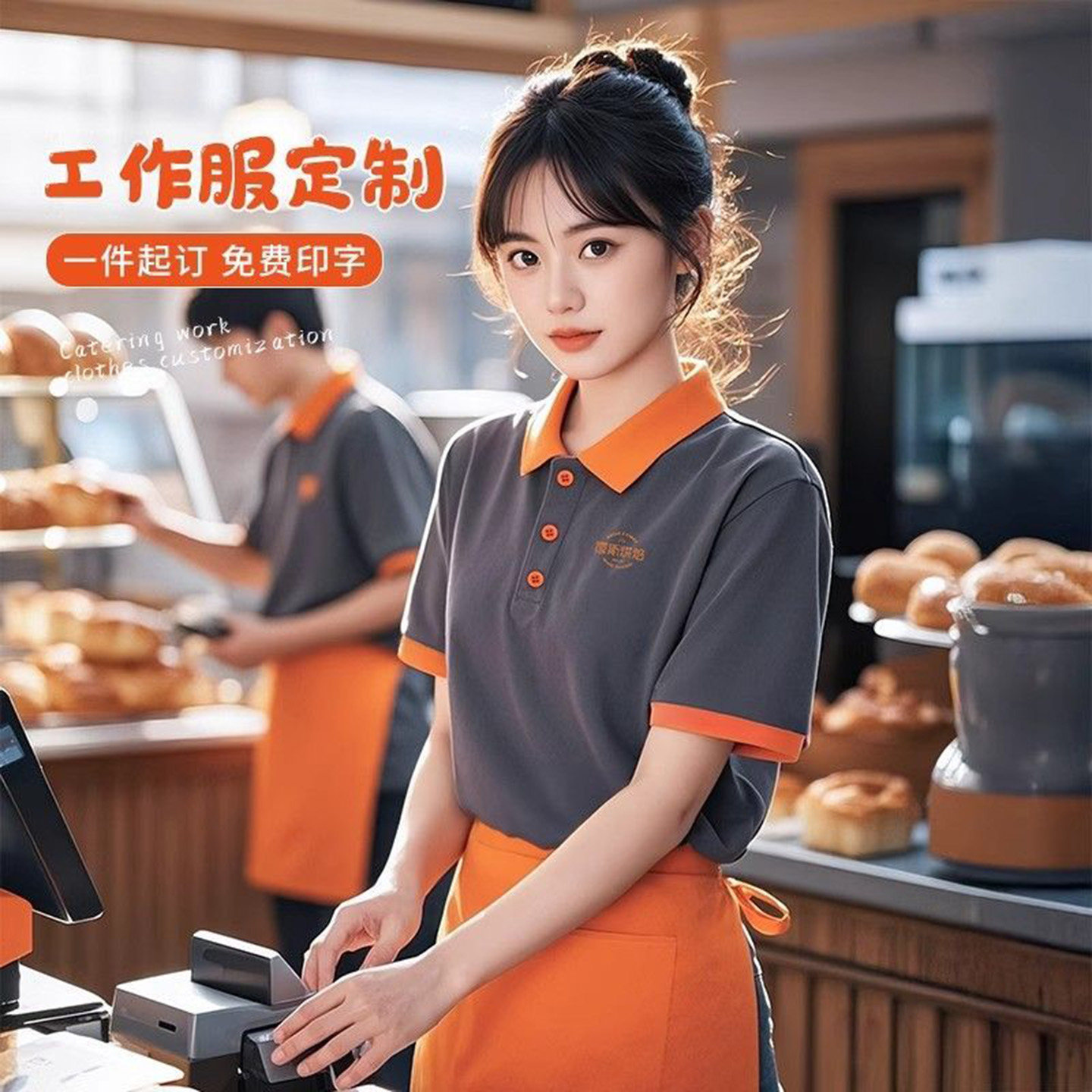 夏季工作服polo衫定制印logo酒店餐饮服务员奶茶烧烤工装t恤短袖