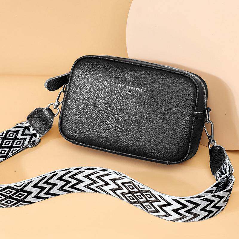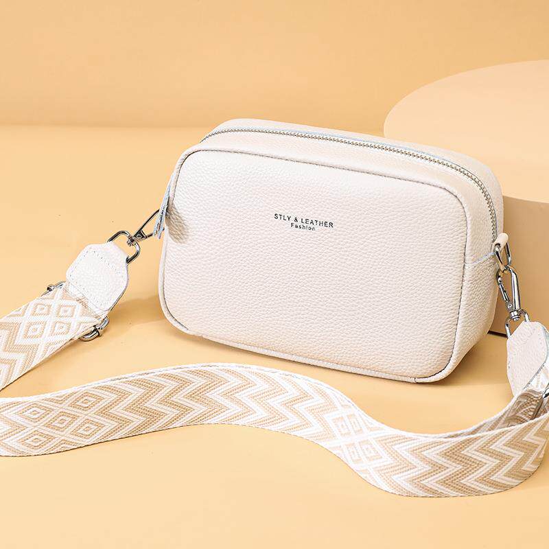 新款斜挎包女百搭时尚爆款单肩包真皮女士包包宽肩带手机包软皮包