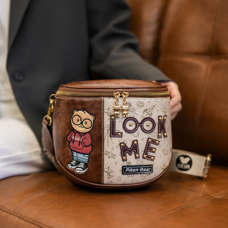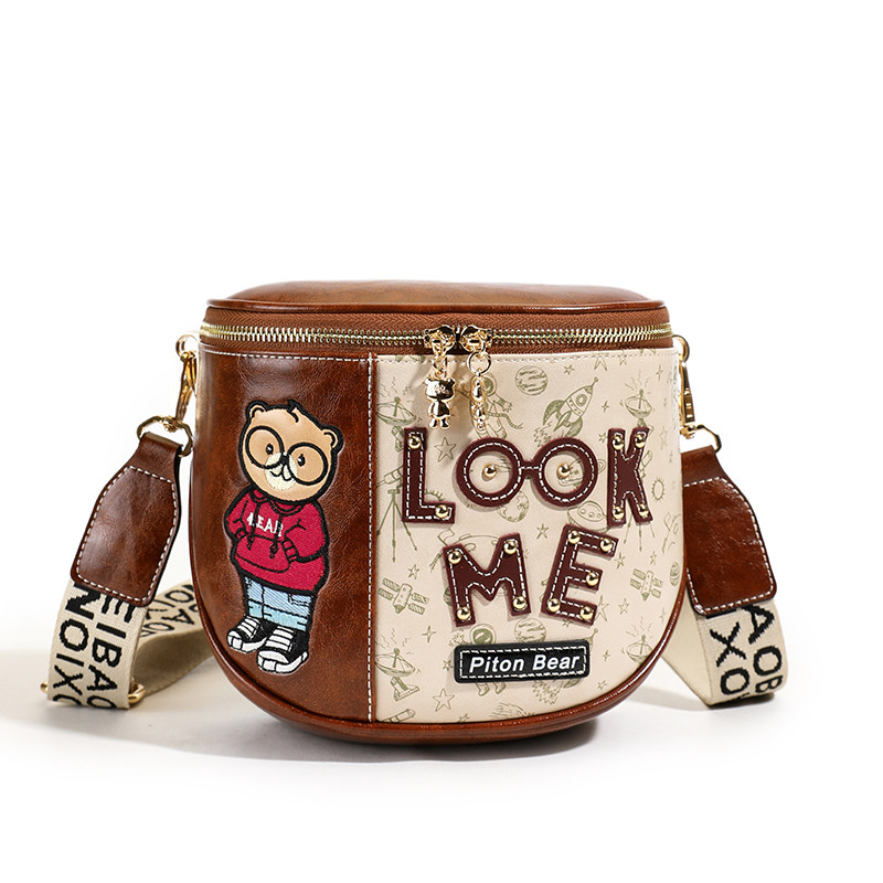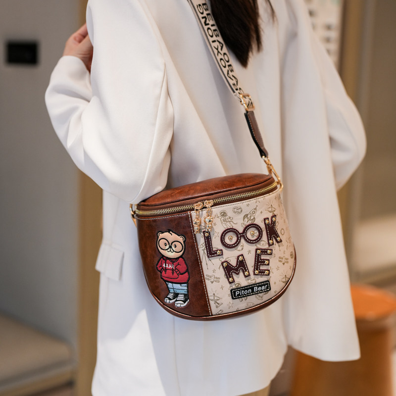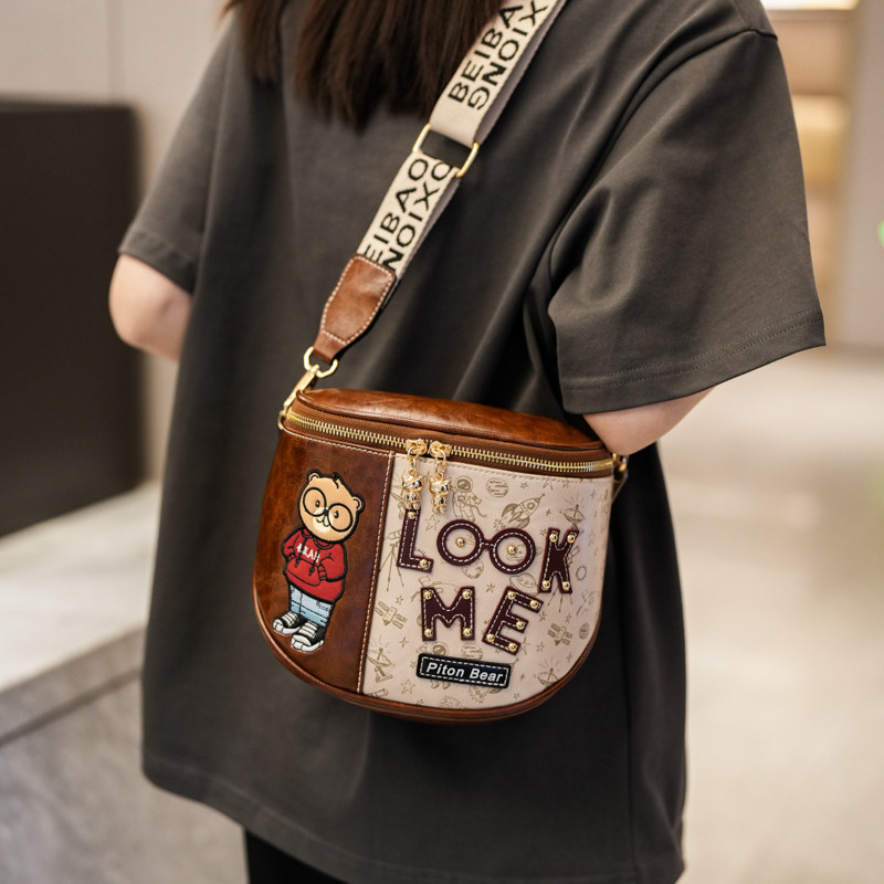 2026新款原创小熊手机包撞色通勤马鞍包女宽肩带单肩斜挎包小包包
