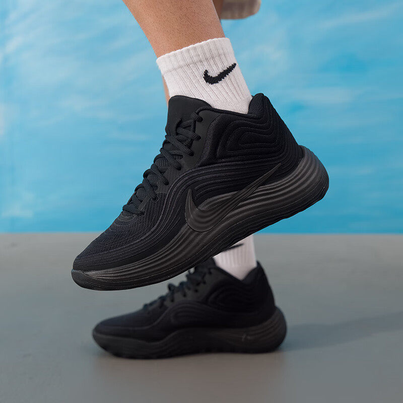 NIKE耐克实战篮球鞋男鞋中高帮黑武士男士健身训练防滑耐磨运动鞋