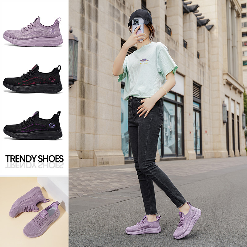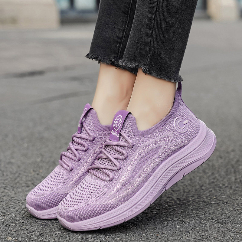飞织网面透气运动鞋女2026春季新款防滑软底不累脚轻便妈妈休闲鞋