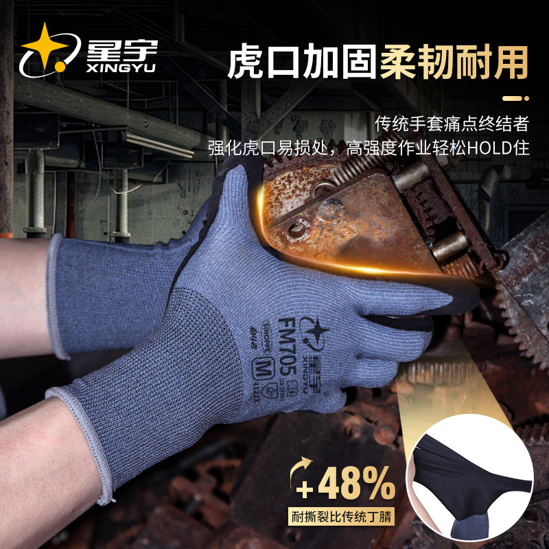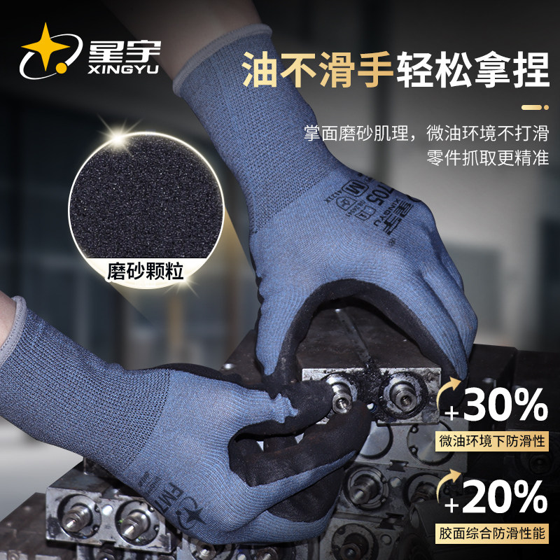 星宇正品劳保手套工作耐磨不烂防滑透气薄款橡胶防油干活工地维修
