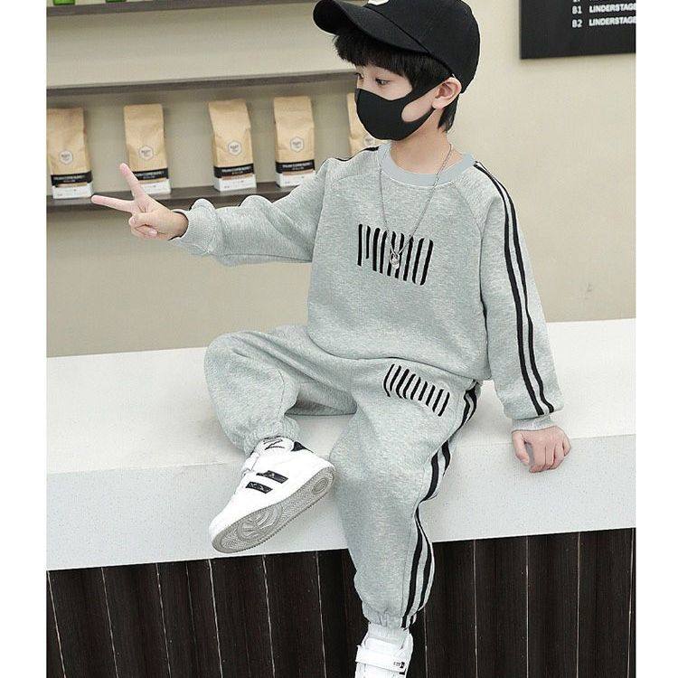 春装套装2026男童新款洋气男孩中大童春秋季韩版加绒卫衣两件套潮