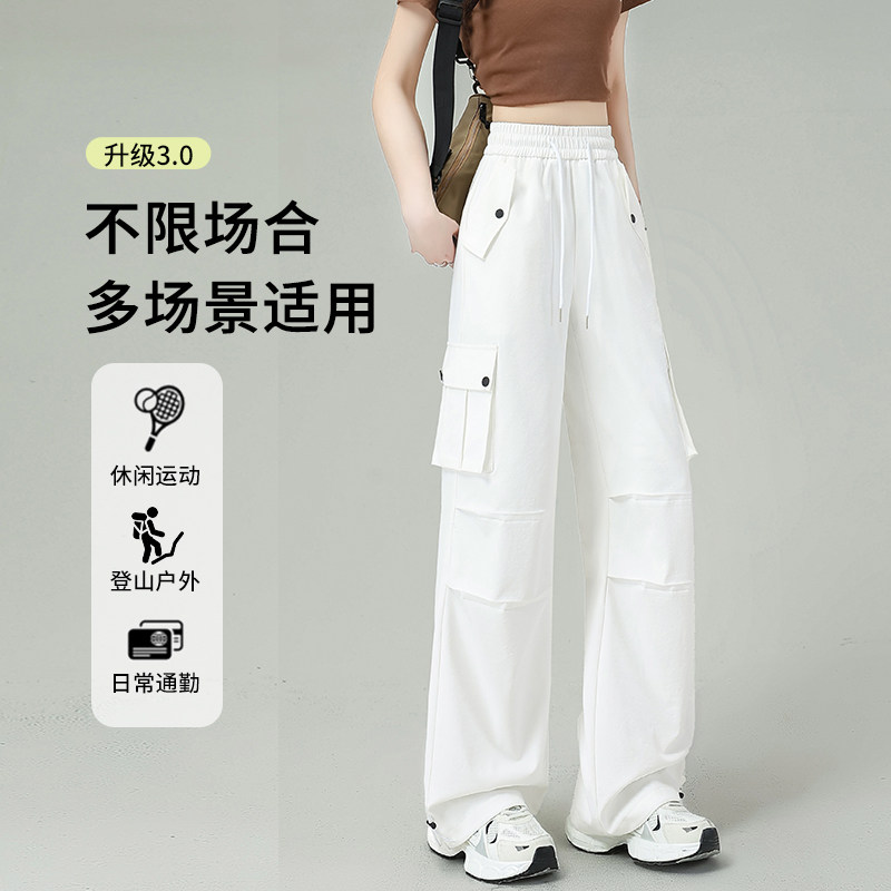 工装裤女款2026新款夏季薄款白色裤子时尚休闲高腰弹力宽松阔腿裤