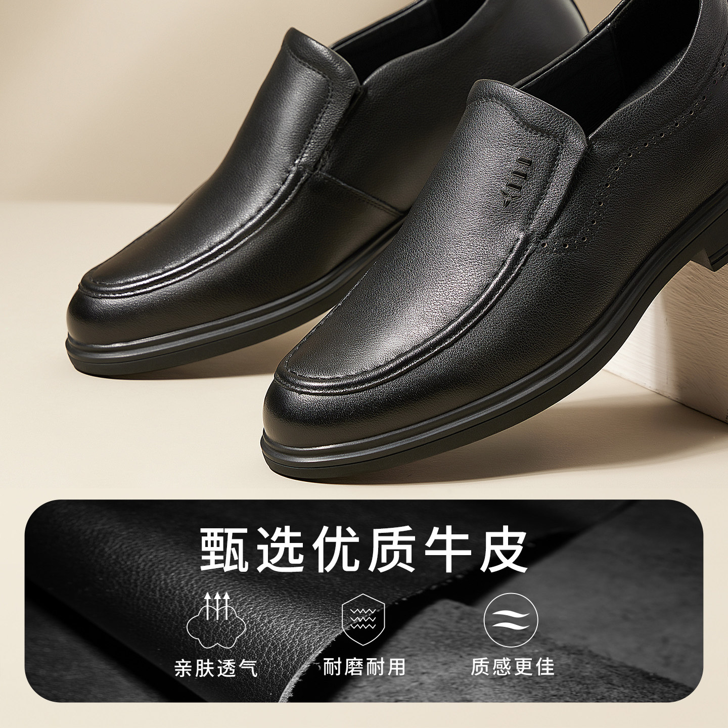 高哥增高皮鞋男正装商务一脚蹬懒人鞋头层牛皮爸爸鞋内增高男鞋