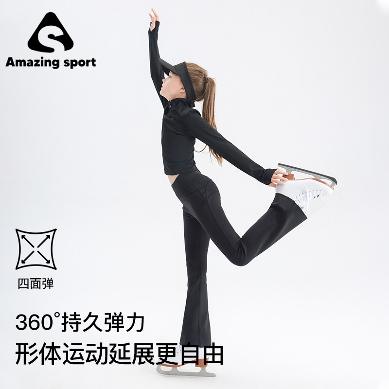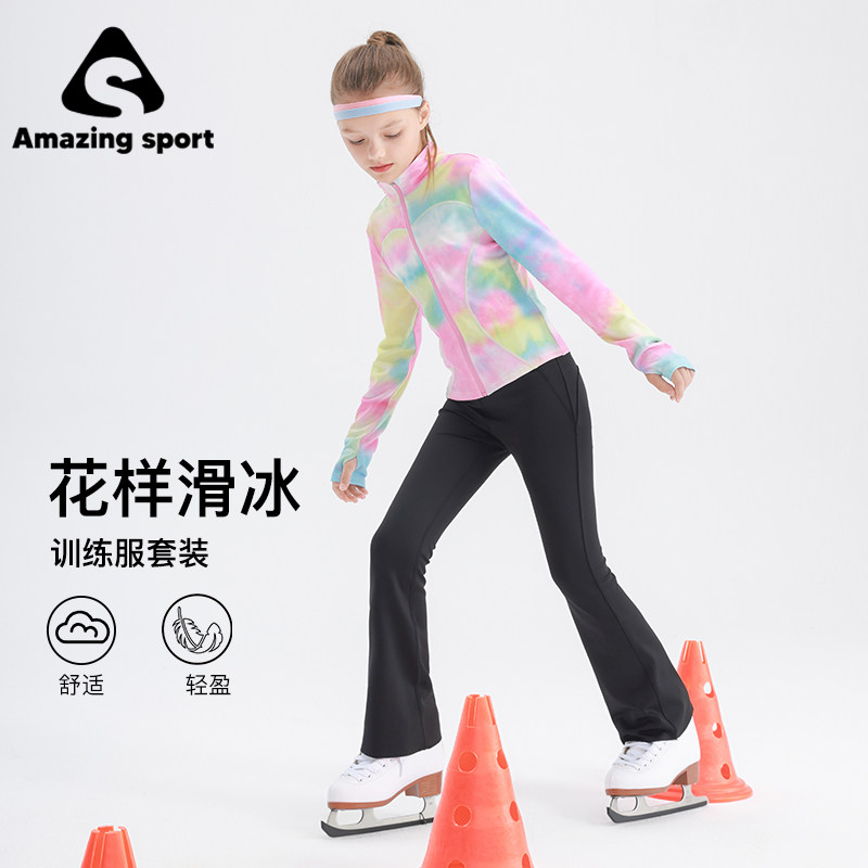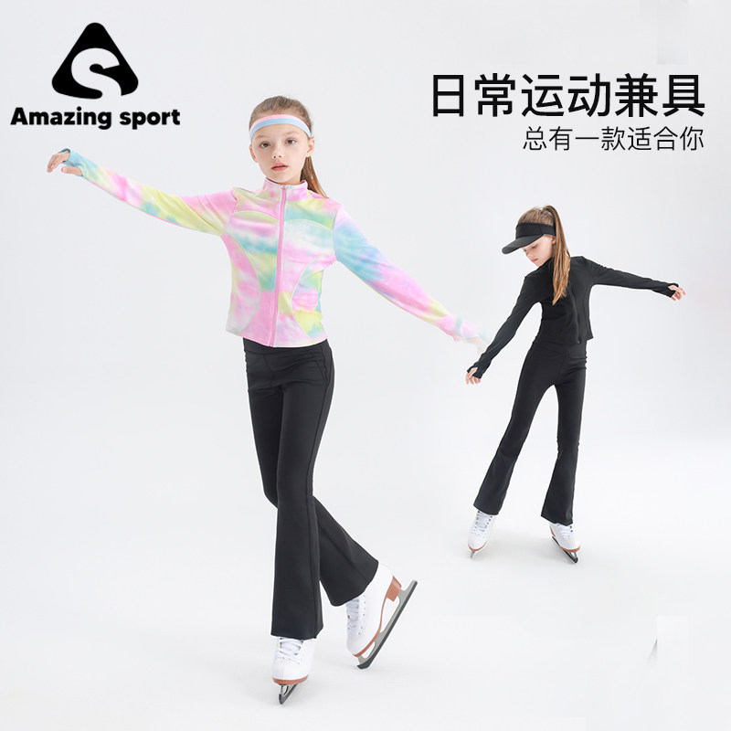 奇动童装女童运动套装速干高弹春秋季新款滑冰运动中大童瑜伽服