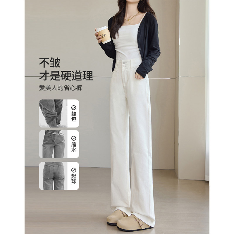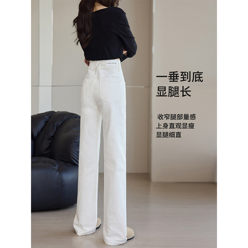 白色阔腿牛仔裤女2026新款春秋高腰显瘦垂感小个子超窄版直筒裤子