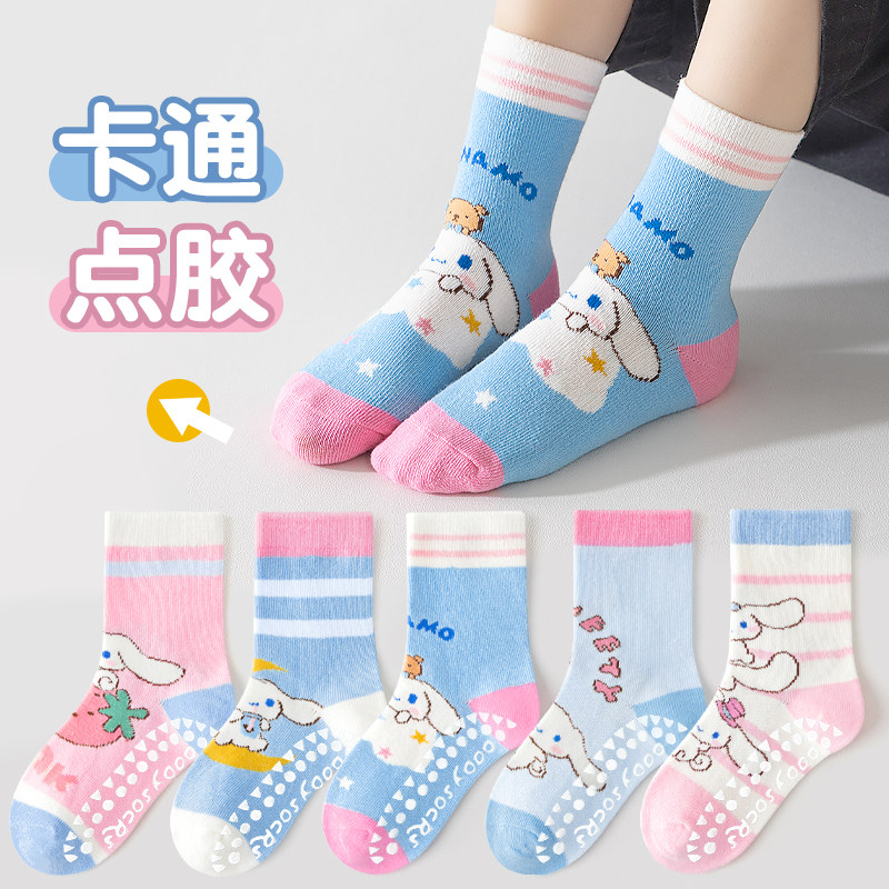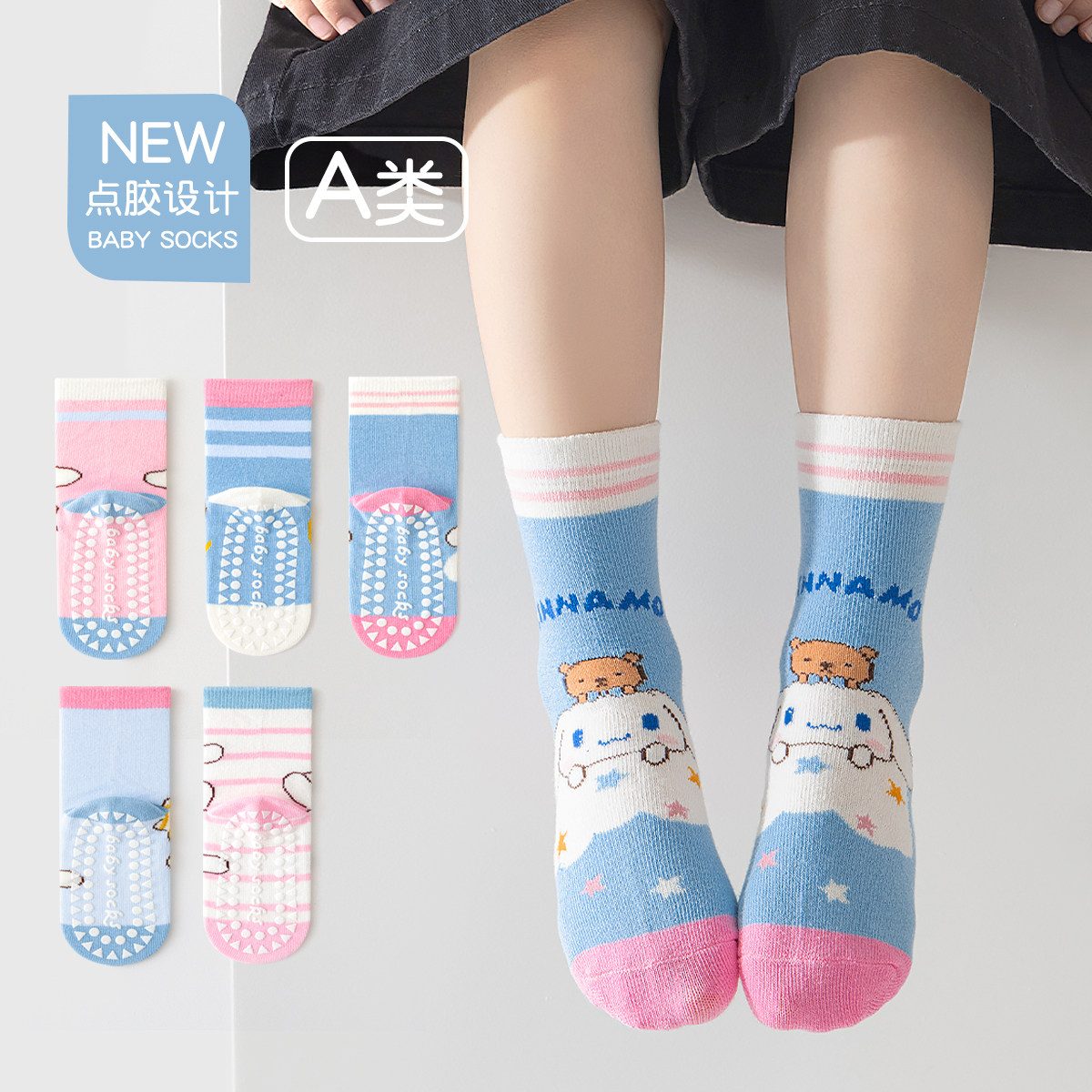 儿童防滑地板中筒袜春秋季袜套男女童袜子卡通纯棉童袜点胶学步袜