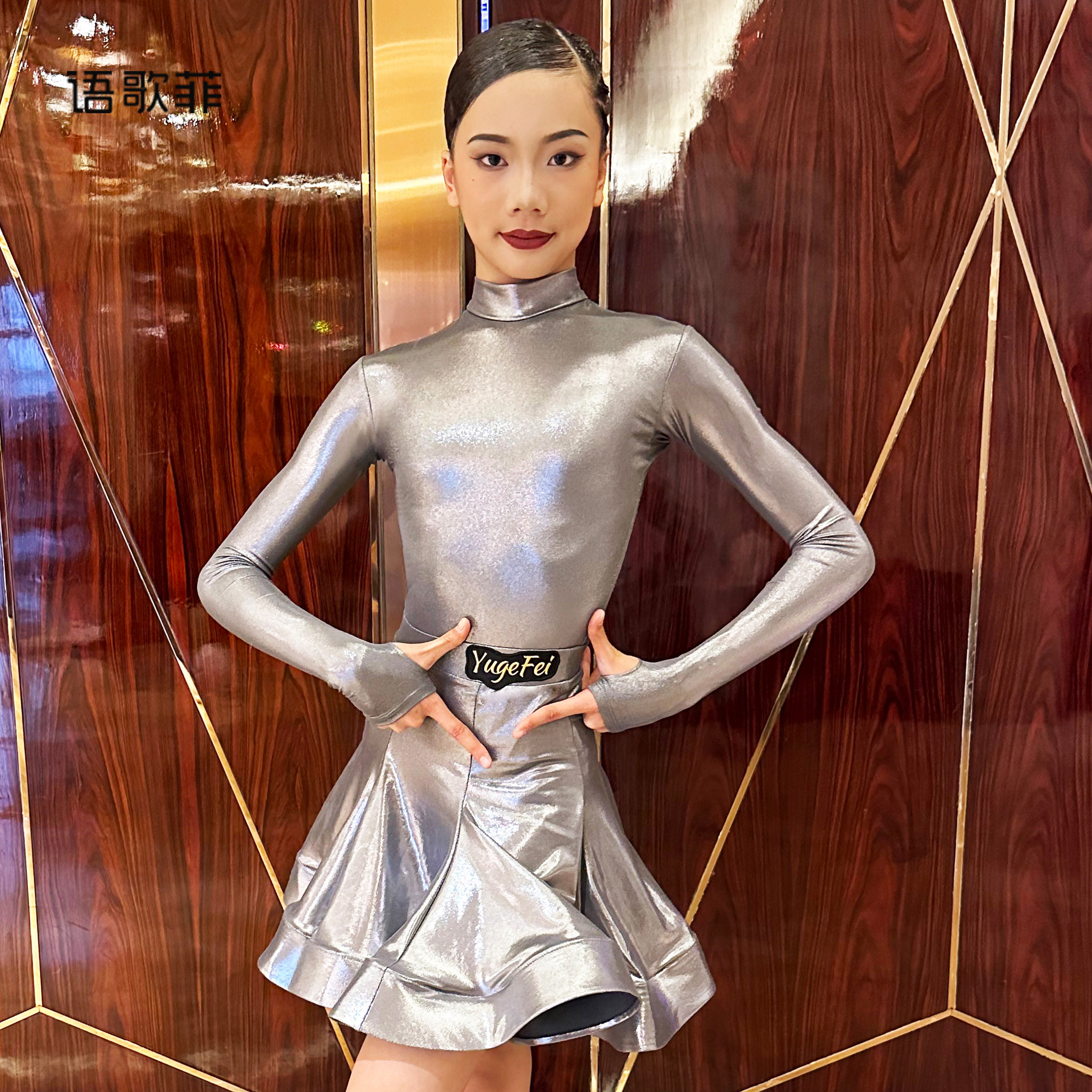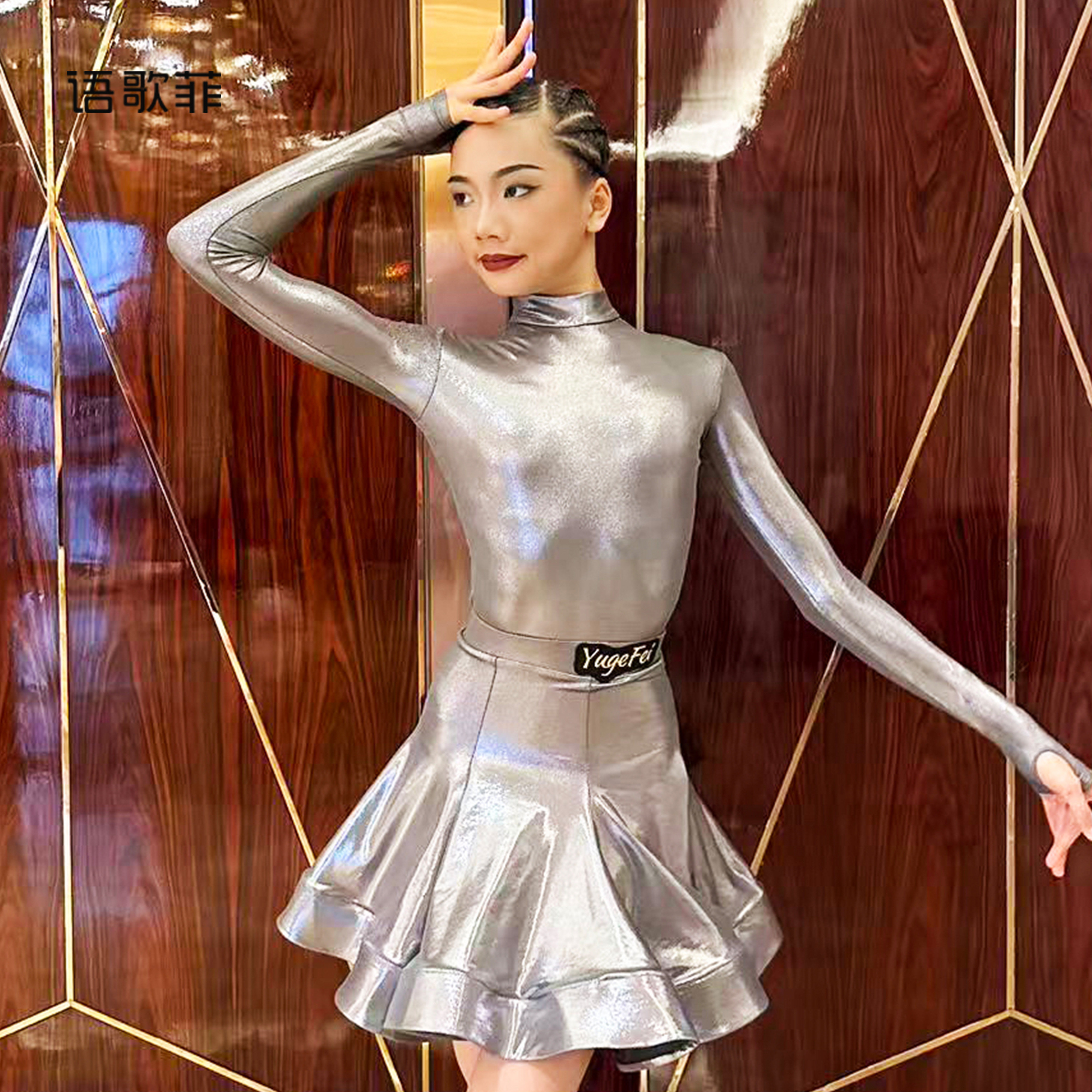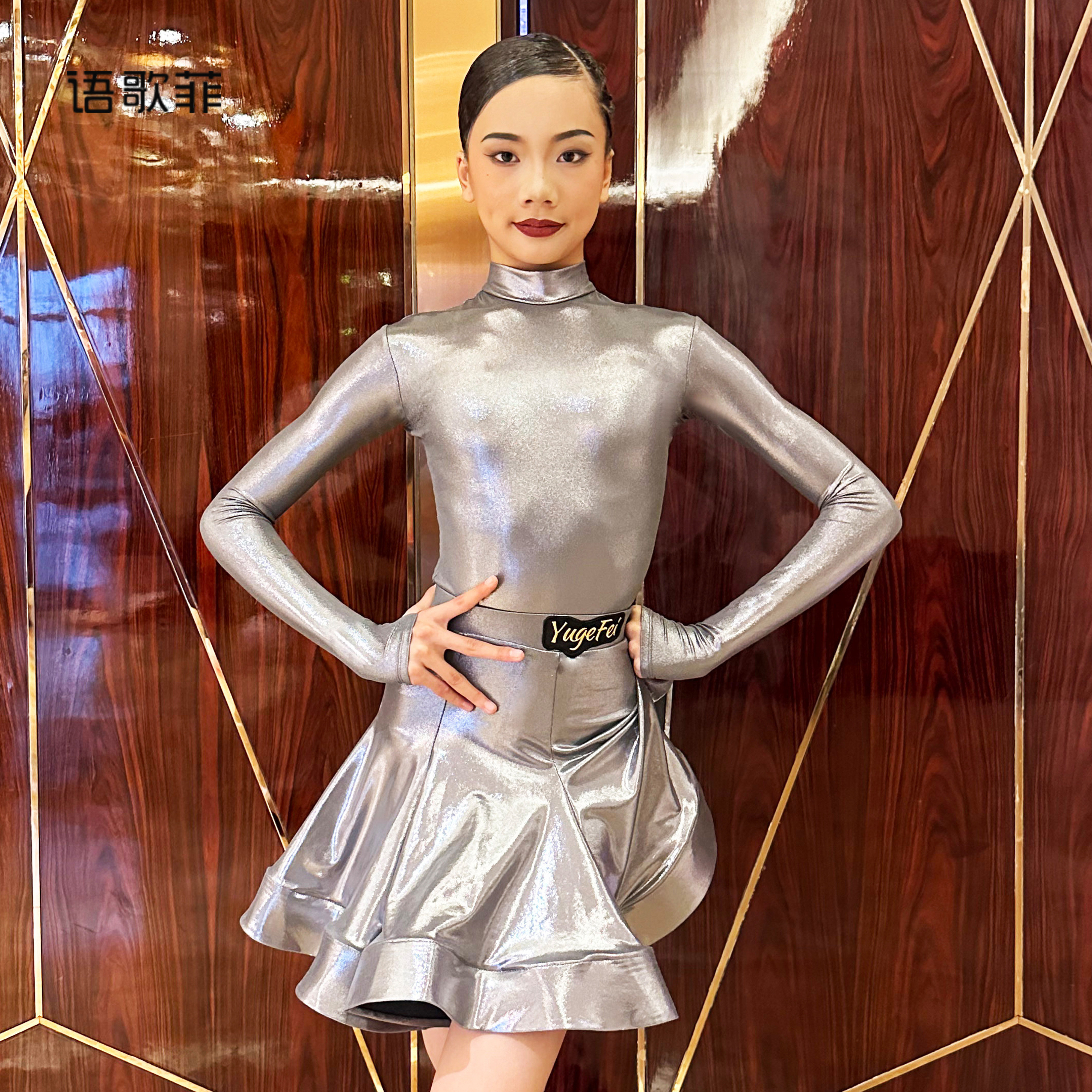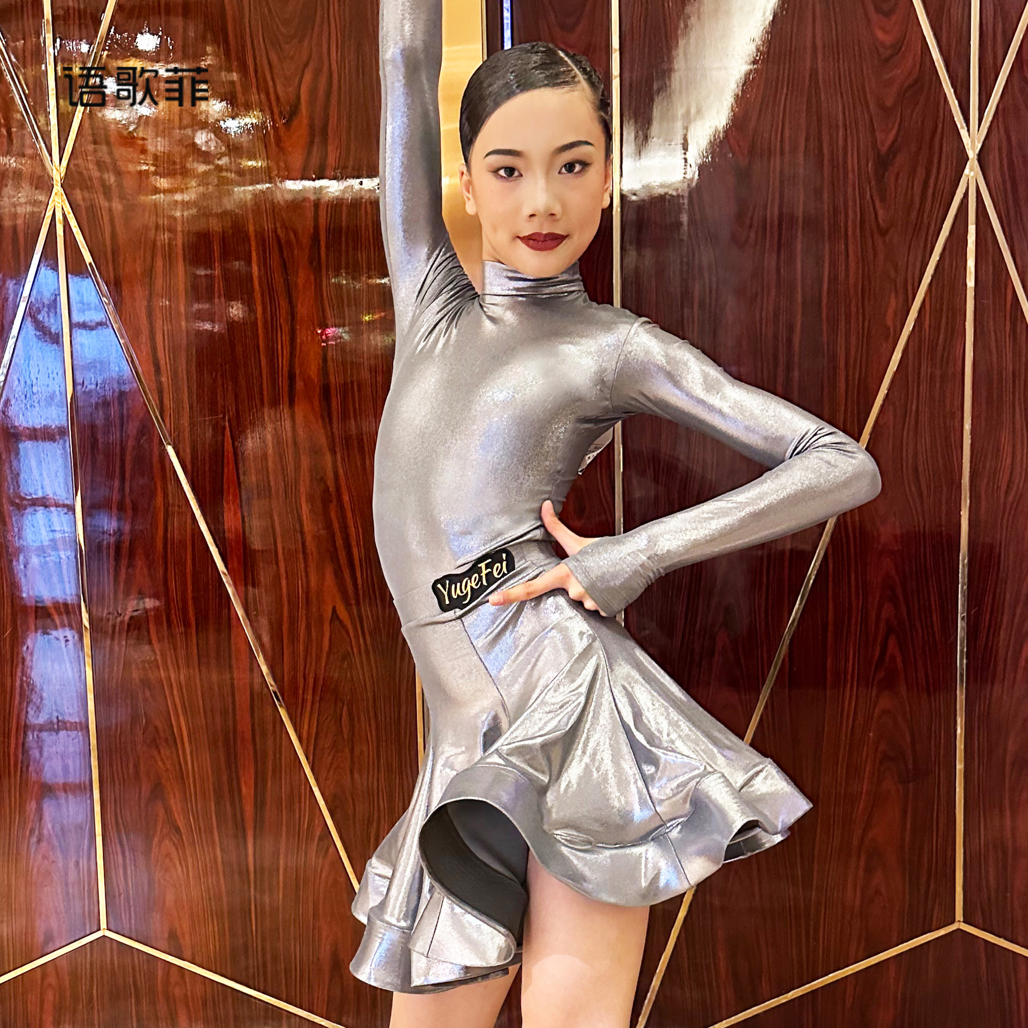 语歌菲拉丁舞服女儿童比赛规定服长袖大裙摆鱼骨裙国标专业演出服