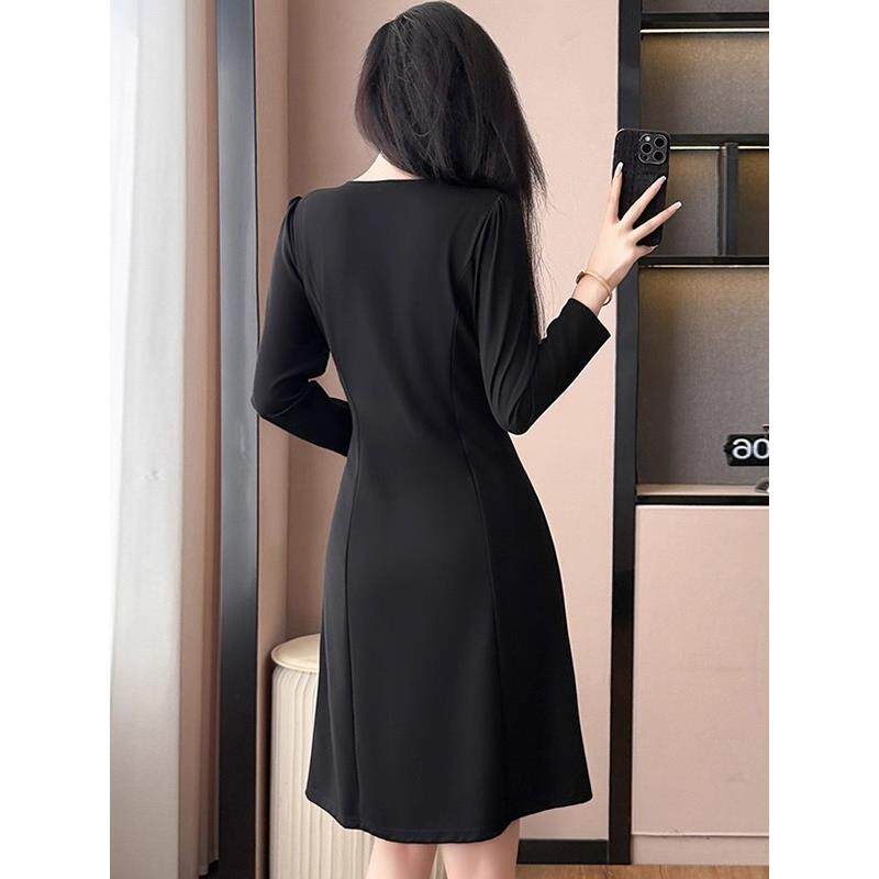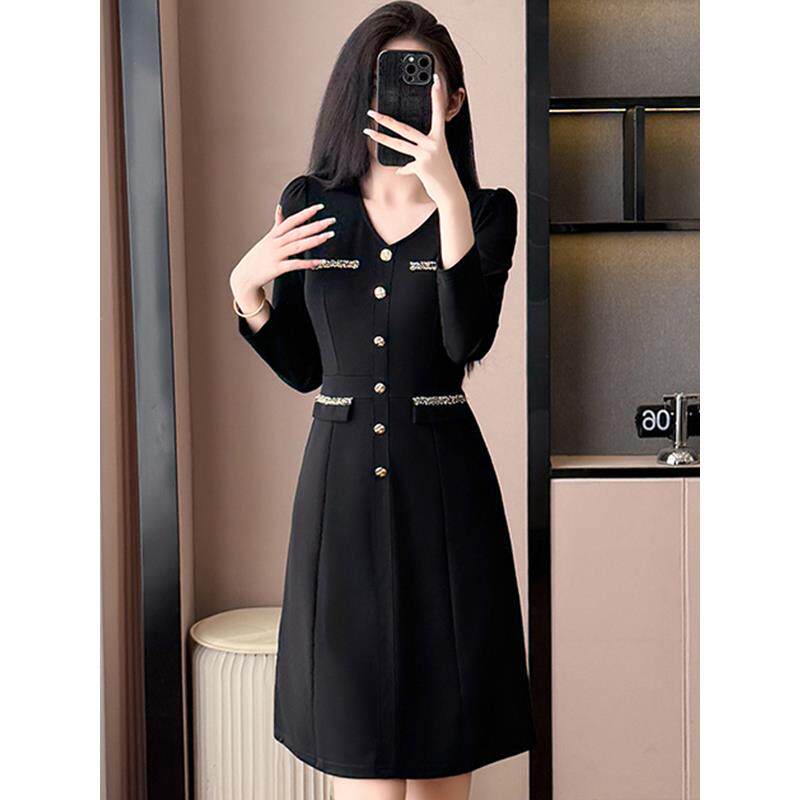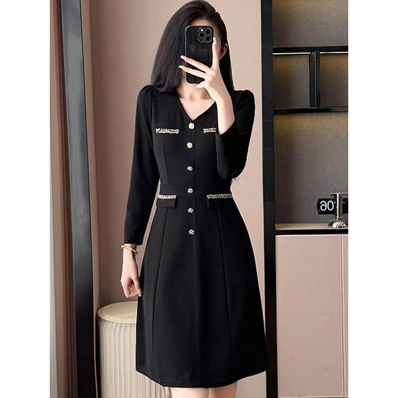 MONLOUVE小香风长袖连衣裙女2025秋季新款轻奢高级感V领气质修身