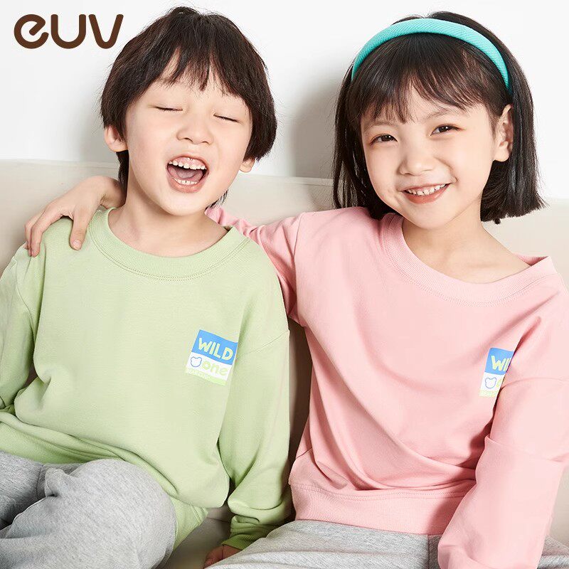 euv 儿童家居服男童a类纯棉卫衣套装中小童女童长袖春秋季睡衣